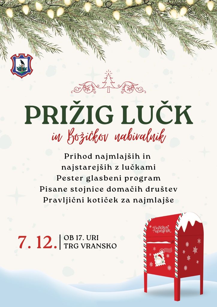 Obveščamo vas, da bo zaradi prireditve Prižig lučk popolna zapora javne poti št. 916322 Trg-AP od 7. 12. 2024 od 6. ure do 8. 12. 2024 do 6. ure.