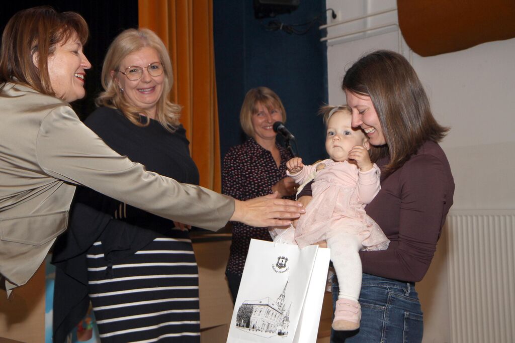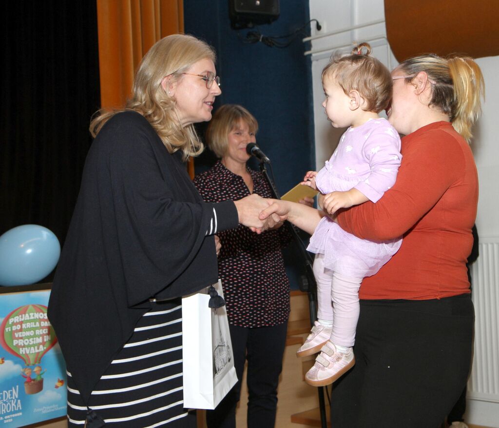 V nadaljevanju je županja sprejela vsakega otroka posebej, čestitala staršem in jim izročila simbolično darilo občine – glasbeno knjigo z zgoščenko, ob kateri se bodo najmlajši učili slovenskih pesmi, ko bodo večji, pa bodo spoznali note in jih morda tudi sami zaigrali. Poudarila je, da na ta način občina prispeva k ohranjanju kulturne dediščine naših prednikov.