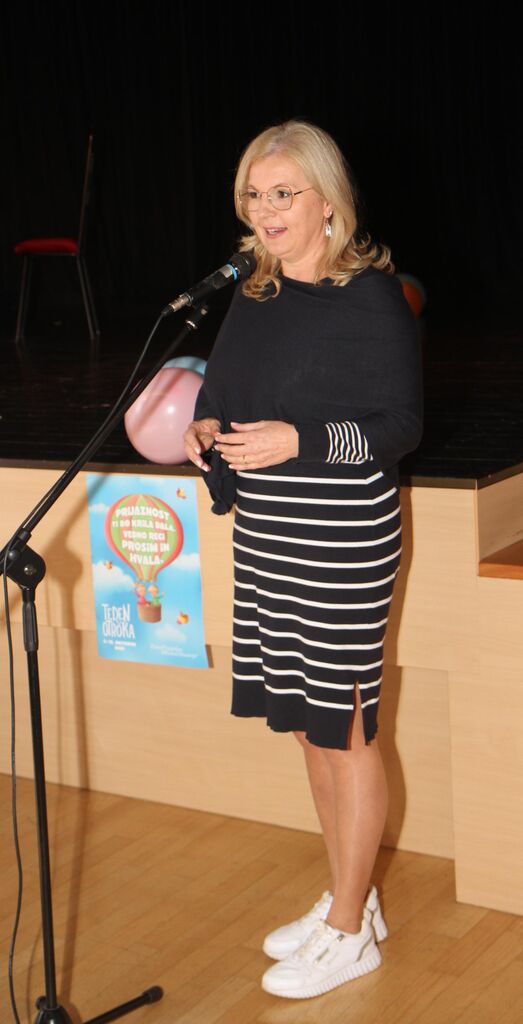 Po kratkem kulturnem programu, ki sta ga z mentorico Damijano Avšič pripravili učenki Glasbene šole »Risto Savin« Žalec, Cecilija Šmerc in Gloria Pikelj, je županja zbrane najprej pozdravila in poudarila, kako dragoceno je vsako novo življenje, ki bogati našo skupnost. Ob tem se je navezala na osrednjo temo letošnjega Tedna otroka Prijaznost ti bo krila dala, vedno reci prosim in hvala, in dodala še besedo oprosti, ki čudežno deluje in izboljšuje odnose. Starše je še spomnila, naj ne pozabijo oddati vlog za denarno pomoč za novorojenčke, s katero občina nagrajuje vsako novo življenje.