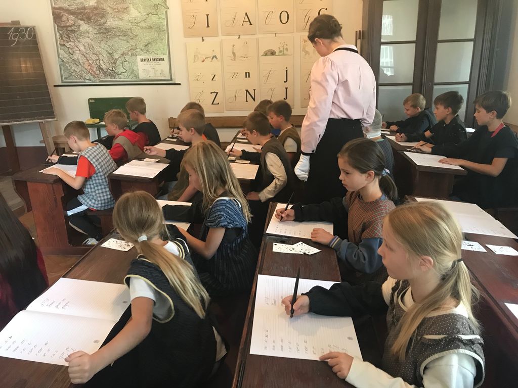 Četrtošolci Osnovne šole Vransko-Tabor in POŠ Tabor smo v četrtek, 22. 9. 2022, po pouku obiskali Slovenski šolski muzej v Ljubljani. Ogledali smo si razstavo šolstva na Slovenskem in se udeležili zanimive in poučne učne ure lepopisa iz leta 1930. Muzej je v celoti prenovljen. Spremljale so nas učiteljice Polona Vodičar, Danijela Jeršič, Simona Jan in Danika Dolinšek, ki so skupaj z nami sedle v šolske klopi. Zelo stroga učiteljica nas je vodila preko učne ure lepopisja, pri tem pa uporabljala stroge učne metode in tudi kazni.
