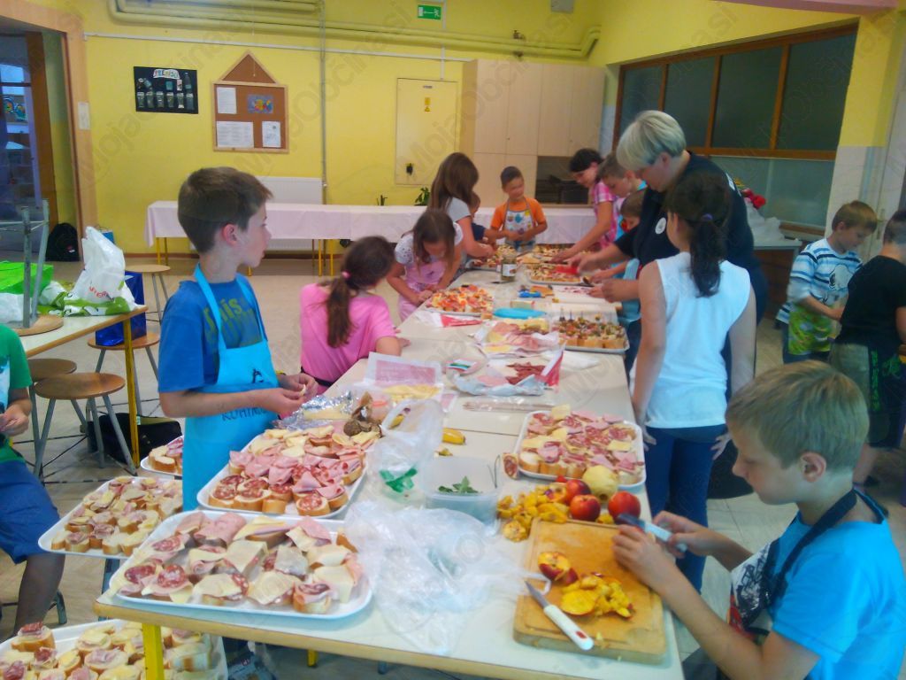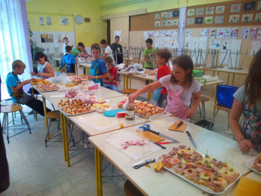 Zadnje srečanje kuharskega krožka v tem šolskem letu nam je obogatila profesionalka na področju strežbe, priprave hrane in ambienta, gospa Vesna Pider. Učenci so sami pripravili preko 350 obloženih kruhkov in skoraj 100 sadnih nabodal. Potrebna je bila le organizacija dela in malce vodenja pri urejanju prostora, pripravi pogrnjenih miz in dekoraciji. Jedilnico šole smo preuredili v pravo restavracijo, kamor so prišli starši in sorojenci učencev kuharjev. Pojedli in popili smo vse pripravljeno, malce pokramljali o celoletnem kuhanju in pripravljanju jedi.