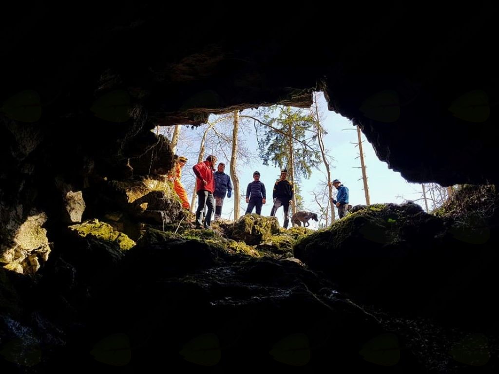 V soboto, 14. 2. 2018, se je tako pasja karavana vila proti znani jami Škadavnici. Psi so lajali in se na pasji način veselili nove dogodivščine, ki jih je čakala ta dan. Najprej sem jim – vodnikom psov, seveda, pa tudi psi so prisluhnili – povedal legendo o vklenjenem človeku v jami, saj so postavili vprašanje, če v jami straši. Če bo pes tulil, potem bodo tako vedeli, da je videl duha, ne pa markerja (marker je skrita oz. iskana oseba, ki jo mora pes najti in tako izpolni svojo nalogo). Skupaj smo se nato najprej brez psov sprehodili po jami, da vodniki spoznajo okolje, ki je drugačno od zunanjega sveta. Skale so spolzke, vmes se pokaže kakšna luknja, pa še tema, kar pomeni, da moramo biti med hojo zelo pazljivi.