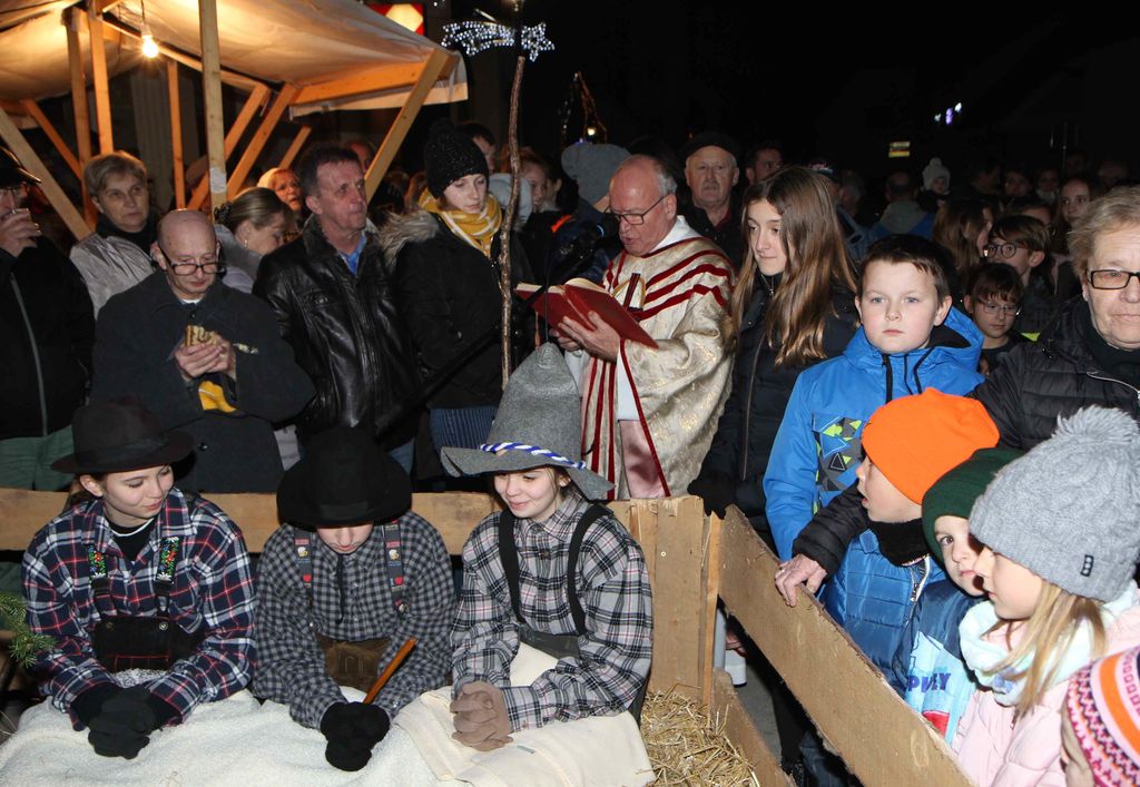 Blagoslov jaslic je ob 18. uri opravil  domači župnik Jožef Turinek, ki je izrekel besede  zahvale vsem, ki so jih pripravili in s tem še obogatili doživljanje božične skrivnosti ter poudaril, da ne smemo pozabiti na bistvo božiča – to je praznik rojstva Odrešenika sveta.