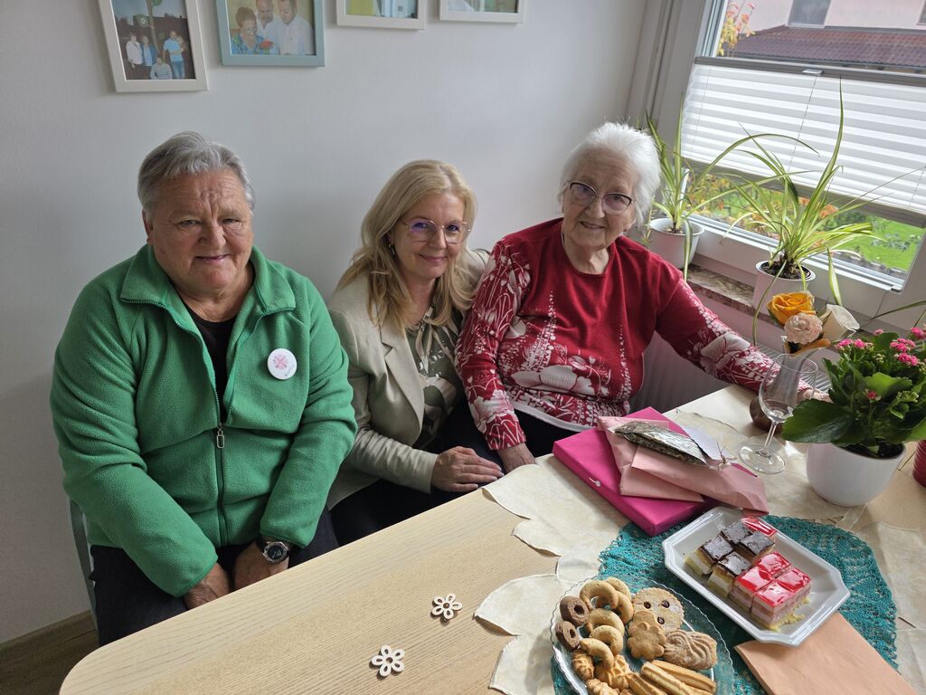 V ponedeljek, 29. 9. 2025, smo sodelavci Župnijske Karitas Vransko in županja Nataša Juhart v Prekopi obiskali najstarejšo občanko občine Vransko Jožefo Završnik, ki je dopolnila častitljivih 99 let. Čakala nas je v svojem gugalniku, ob našem prihodu pa je korajžno poprijela za svojo hoduljo in nas sprejela s prijaznim pozdravom. Gospa Jožica živi pri svojem sinu in snahi, ki zelo lepo skrbita zanjo. Ob klepetu smo se njenim zgodbam tudi prisrčno nasmejali. Zaželeli smo ji veliko trdnega zdravja z željo, da se ponovno srečamo prihodnje leto.