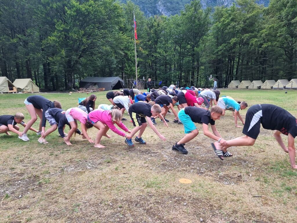 Z budnico, dvigom zastave in z jutranjo telovadbo smo vsak dan poskrbeli, da smo bili pri zajtrku poskočni že tudi največji zaspanci. Za okusno hrano je poskrbel oskrbnik centra z družino in s pomočjo mladih prostovoljcev iz cele Evrope, mi pa smo po vsakem obroku pospravili in počistili jedilnico.