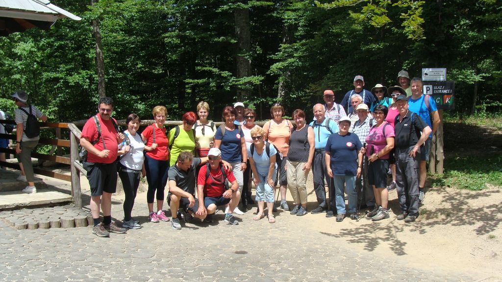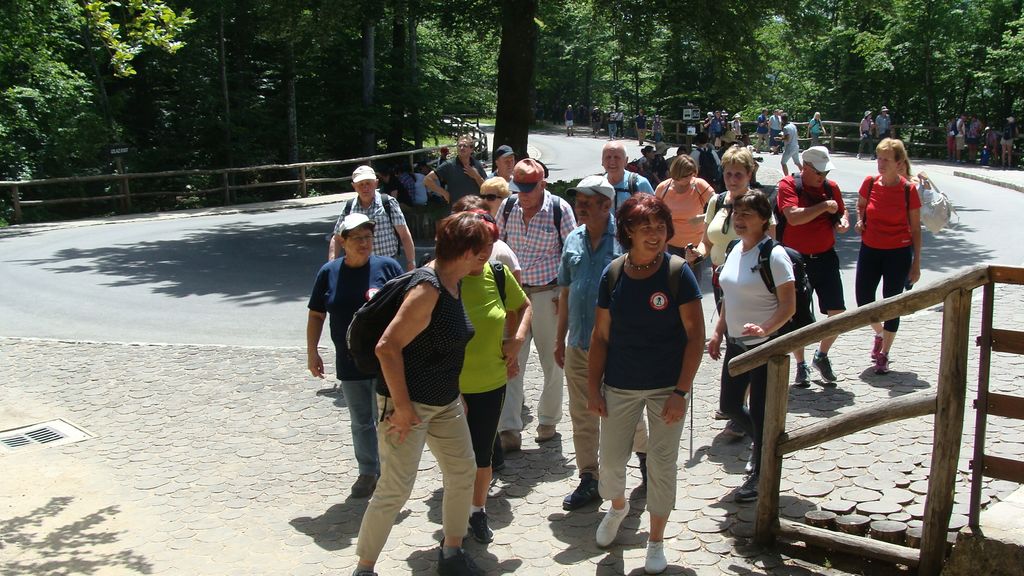 Za izlete v tujino v našem društvu že nekaj let vlada izredno zanimanje, tokrat se nas je na pot odpravilo kar 58. Ker se planinske ture običajno začenjajo v zgodnjih jutranjih urah, tudi tokrat ni bilo nič drugače. Ob 4.00 smo bili polni pričakovanj nameščeni v svojih sedežih na avtobusu, ki je takoj nato krenil na pot v smeri Rogatec-Karlovac-Slunj. Tu smo se ustavili na parkirišču gostilne Feniks in si privoščili zajtrk iz prtljažnika, spili kavico ter vonjali naše popoldansko kosilo. Jagenčki in odojki so se namreč že vrteli na žaru.