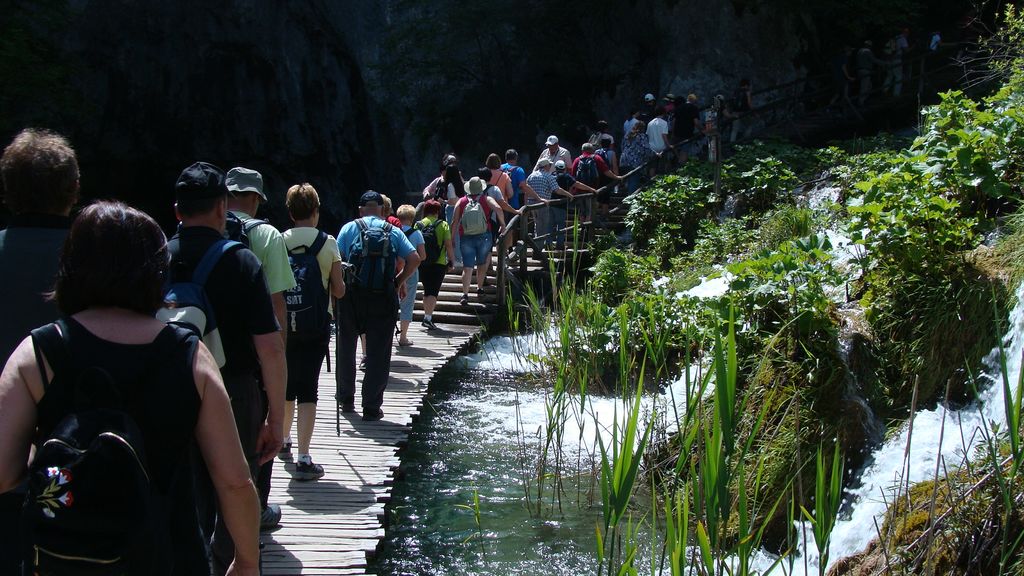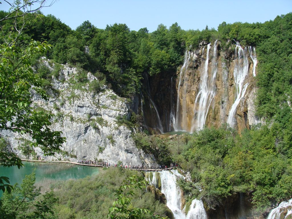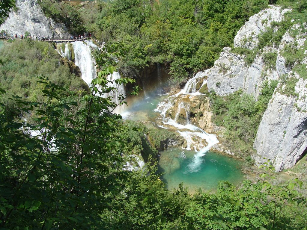 Okrog 10. ure smo vstopili v park in tam ostali dobre štiri ure. Hlad jezerskih voda, ki v poletnih mesecih dosežejo tudi 23 stopinj Celzija, nas je blagodejno varoval pred letošnjimi prvimi visokimi temperaturami. Sprehodili smo se ob jezerih različnih velikosti, barv, oblik ter globine in ob tem občudovali številne manjše in večje slapove, predvsem največjega, ki se v padcu 78 m spušča preko skal in tvori skupaj s vodami Plitvičkega potoka ter vodami najnižje ležečega jezera Novakovića Brod, začetek toka reke Korane.