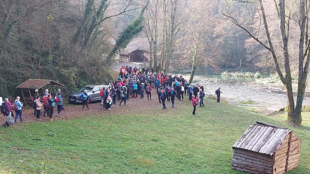 Koraki so nas vodili skozi kraško pokrajino, kjer so se bele breze nežno pozibavale v vetru, ob poti pa so se vrstile samotne kapelice, cerkve in zidanice. Vsak postanek je bil priložnost za klepet, za izmenjavo vtisov in za občudovanje naravnih biserov – med njimi izvira reke Krupe, ki je s svojo zeleno-modro barvo očaral prav vsakega pohodnika. V naselju Črešnjevec nas je na Domačiji Škof – Šrajf navdušila muzejska zbirka partizanske bolnišnice Topolovec, kjer je od 15. septembra 1944 do 27. aprila 1945 delovala slovenska vojaška partizanska evakuacijska bolnišnica z ilegalnim imenom postojanka Topolovec.