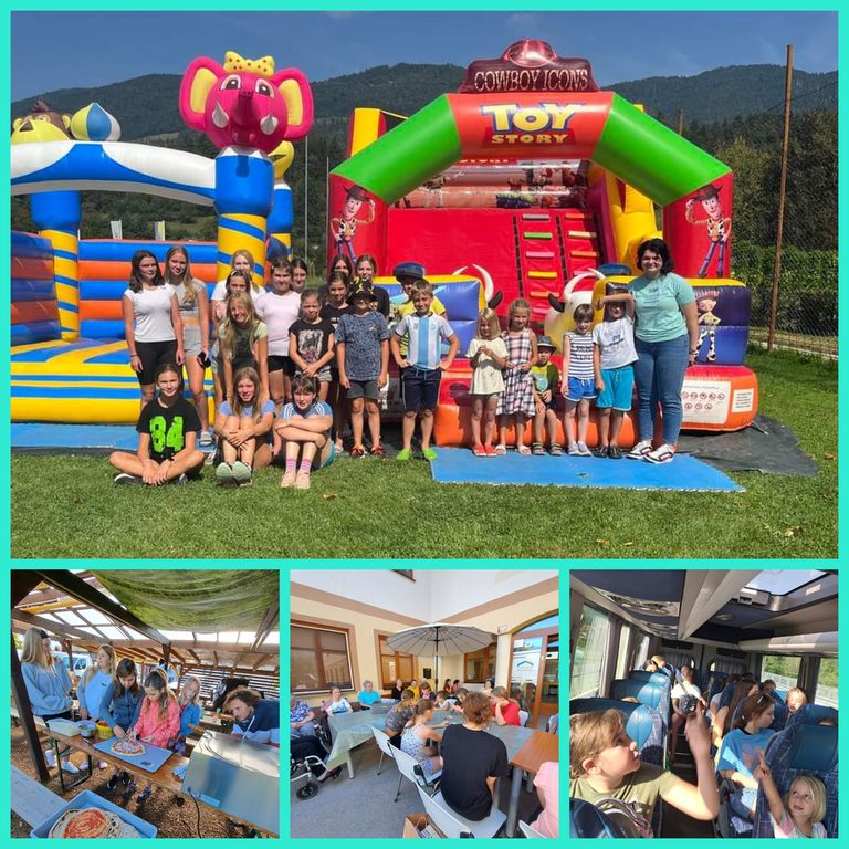Poleg »večno aktualnih« družabnih iger, ustvarjalnih delavnic in nogometa nam je poletne dni polepšal Aljoša Golob, ki nas je naučil, kako se pripravijo najboljše pice daleč naokoli, družili smo se s stanovalci Našega doma ter se odšli ohladit na bazen v Prebold. Tako kot lani pa smo počitnice zaključili z divjo zabavo na napihljivih igralih.