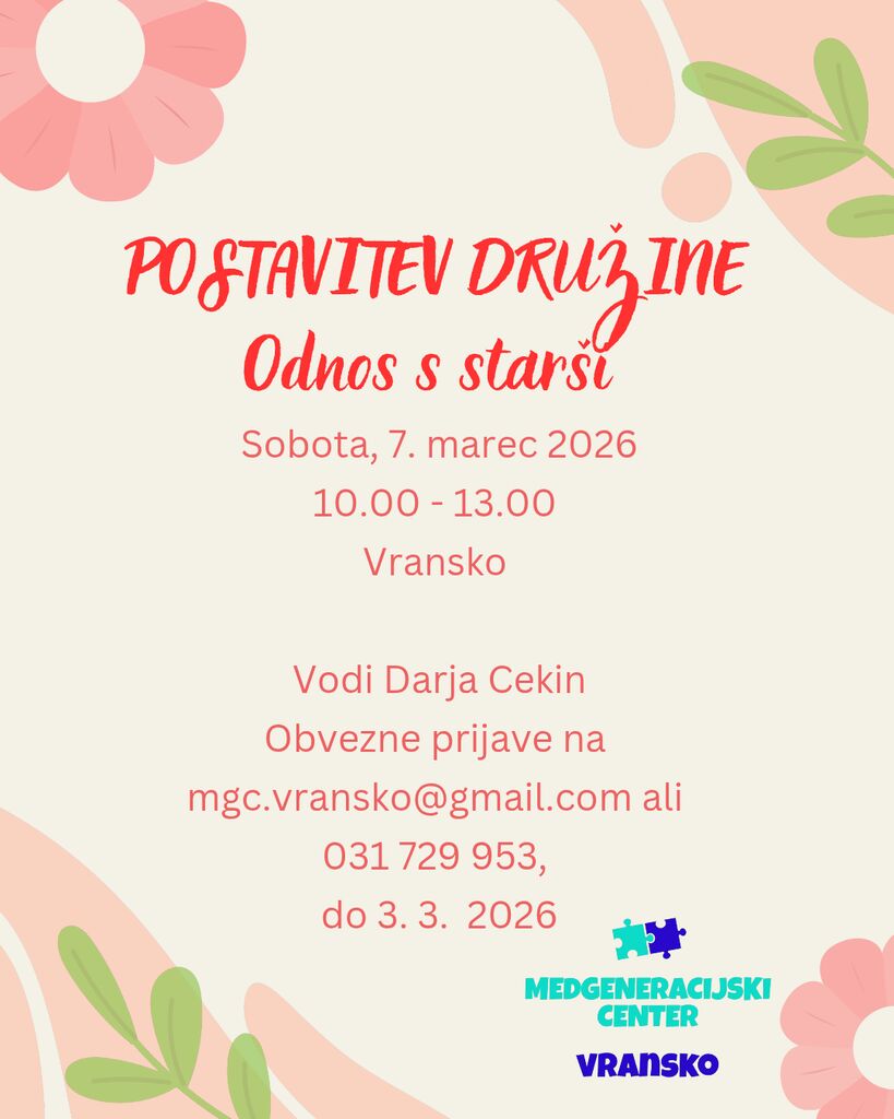 V soboto, 7. marca, bo na Vranskem od 10. do 13. ure potekala delavnica Postavitev družine - Odnos s starši.