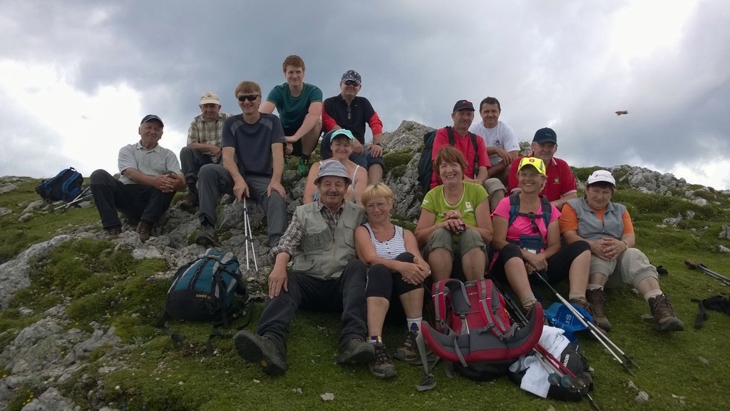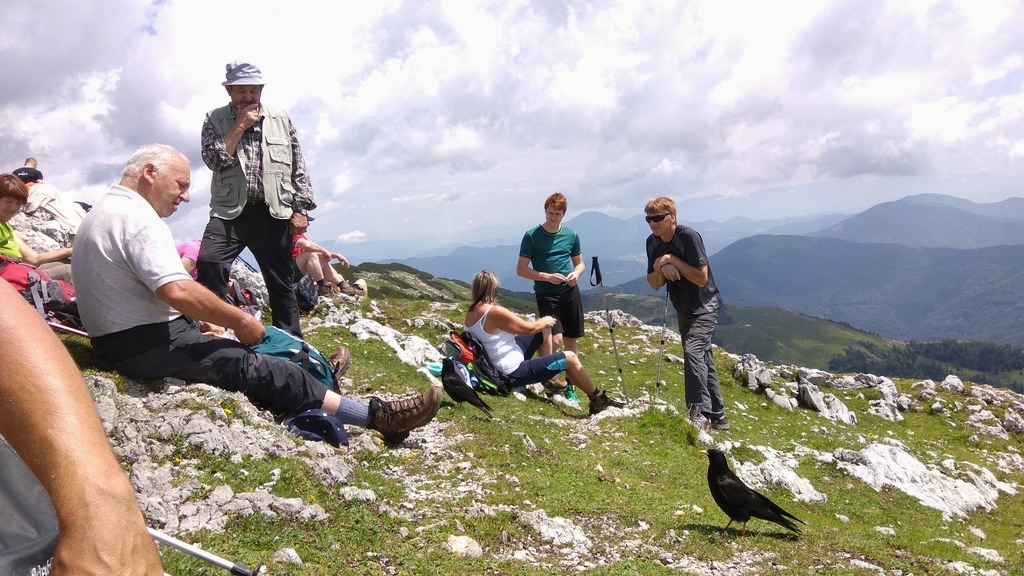 Pripeljali smo se do parkirišča, od koder je do Koče na Loki še 15 minut hoje. Tu je sledil krajši postanek za malico, nato pa vzpon proti vrhu. Vreme, delno oblačno, je poskrbelo, da nam ni bilo prevroče. Na vrh smo prispeli okoli 12. ure. Imeli smo enourni počitek in druženje s kavkami. Sestopili smo po grebenu proti Snežni jami. Planinci, ki so si že ogledali Snežno jamo, so se  nato vrnil na Kočo na Loki, ostali pa smo si ogledali še Snežno jamo.