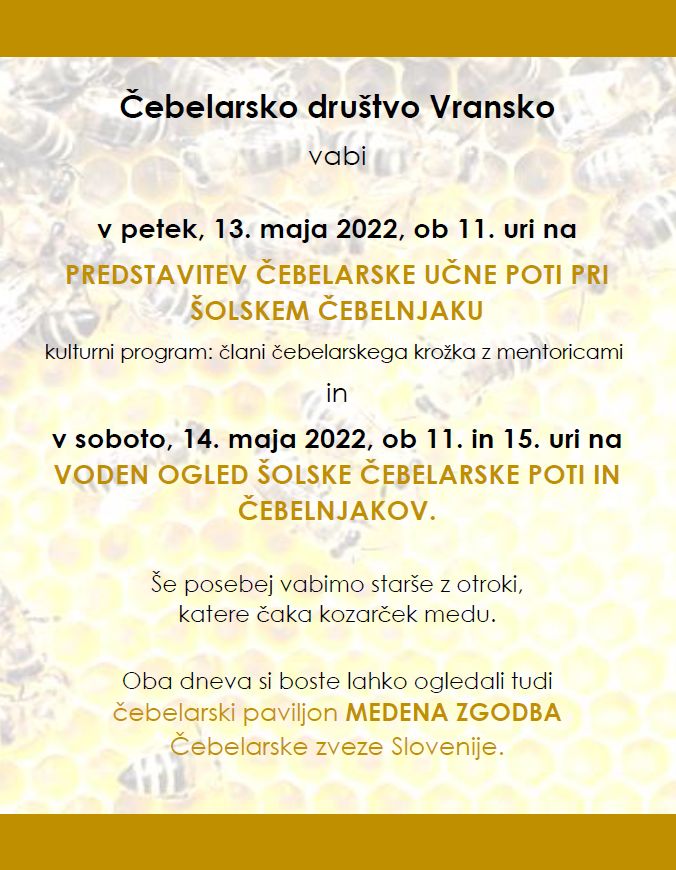 VABILO ČEBELARSKEGA DRUŠTVA VRANSKO
