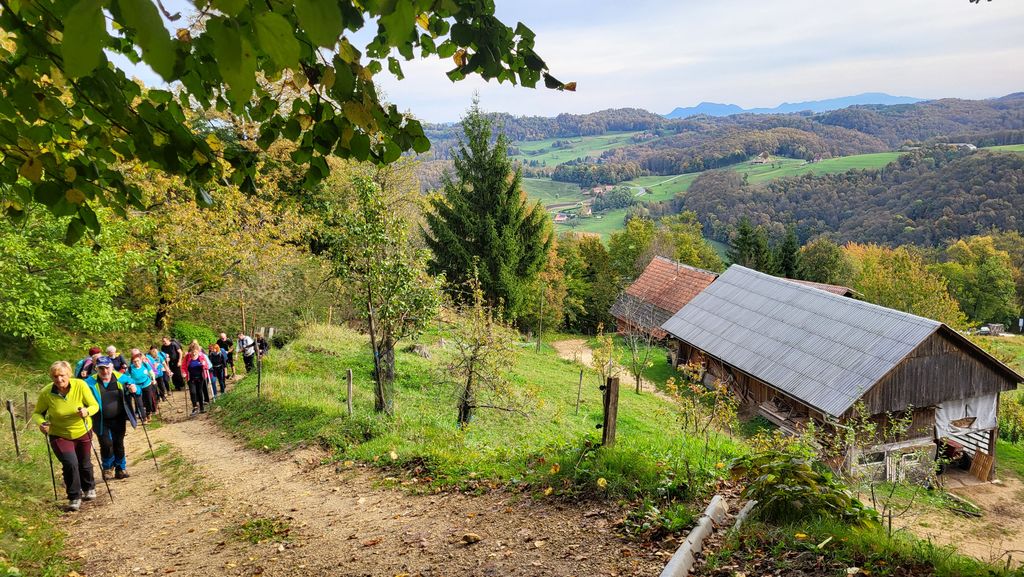 Če bi izlet na Vetrnik (709 m) izvedli junija, kot smo načrtovali, bi lahko občudovali hribovske suhe travnike z izredno visoko biotsko pestrostjo (kobilice, metulji, ptice, zdravilne rastline, kukavičevke in druge cvetlice), saj lahko tu pozno pomladi in poleti našetjemo več kot 50 rastlinskih vrst na kvadratni meter. A žal se nam junija ni izšlo, smo pa zato v nedeljo, 13. oktobra, izlet povezali s 25. Praznikom kozjanskega jabolka, med potjo pa nabirali kostanj.