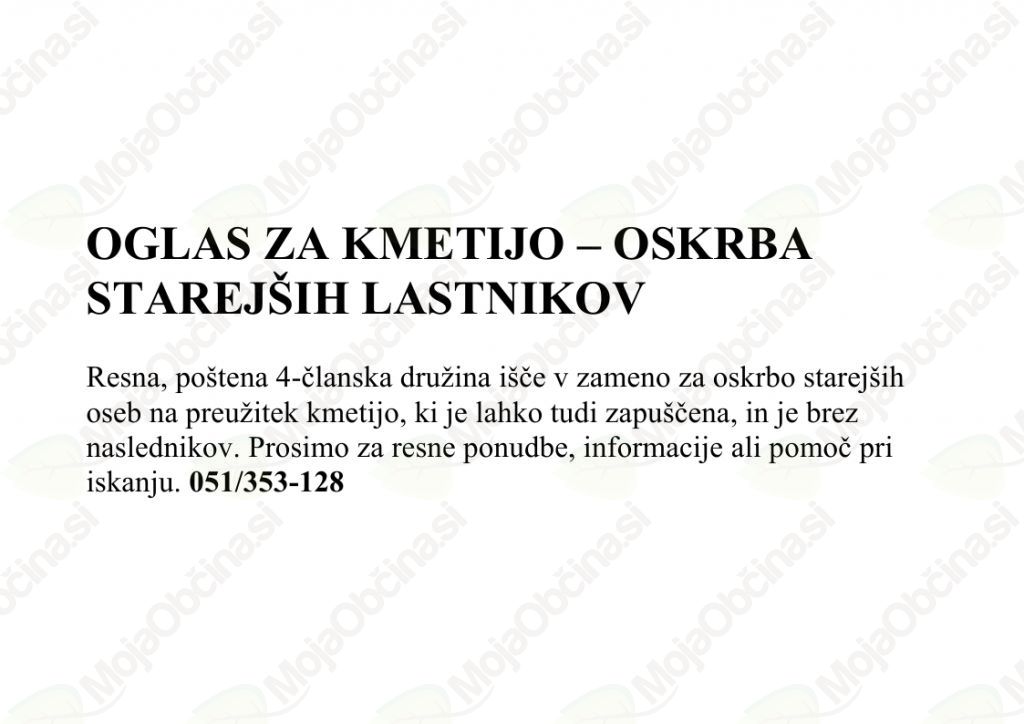 Mlada štiričlanska družina, 34-letni očka Boris, inženir kmetijstva, 32-letna mamica Marjetka, matematičarka, in nadvse simpatični 5,5-letna Tisa ter 3-letna Nika iščejo kmetijo.
