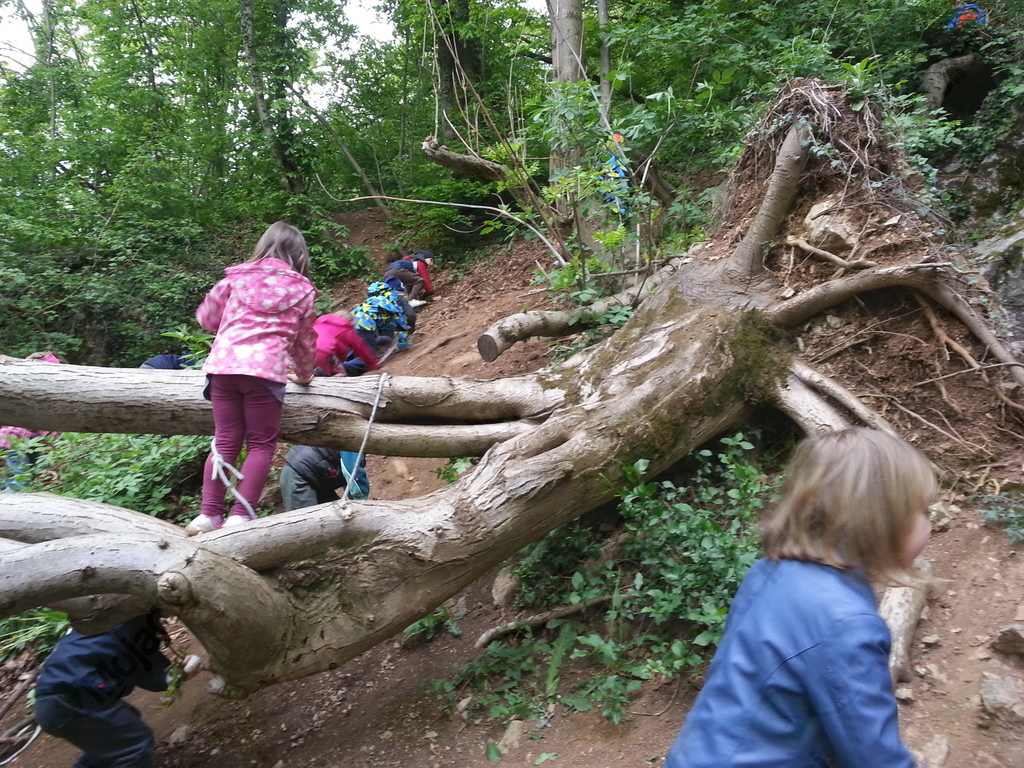 Tudi drugi, sprva opazovalci in navijači, so hitro našli delo zase. Raziskovali so podrto drevo, opazovali njegove mogočne, razvejane korenine, se skrivali, plezali in premagovali naravne ovire. Prepletali so vrvi, vezali in se urili v sodelovanju.