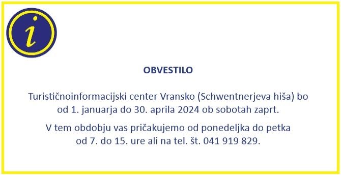 TIC Vransko – zimski delovni čas