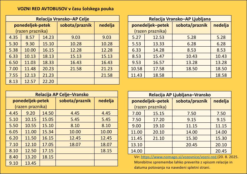 VOZNI RED AVTOBUSOV v času šolskega pouka