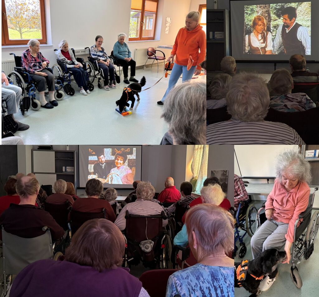 Kot vedno pa je med nas prišel tudi naš kosmati prijatelj – kužek Happy. Njegov obisk je vedno nekaj posebnega, saj nas napolni z veseljem in dobro voljo. Skupaj malo potelovadimo, poklepetamo, Happy pa seveda z veseljem sprejme tudi kak priboljšek in nežno božanje.