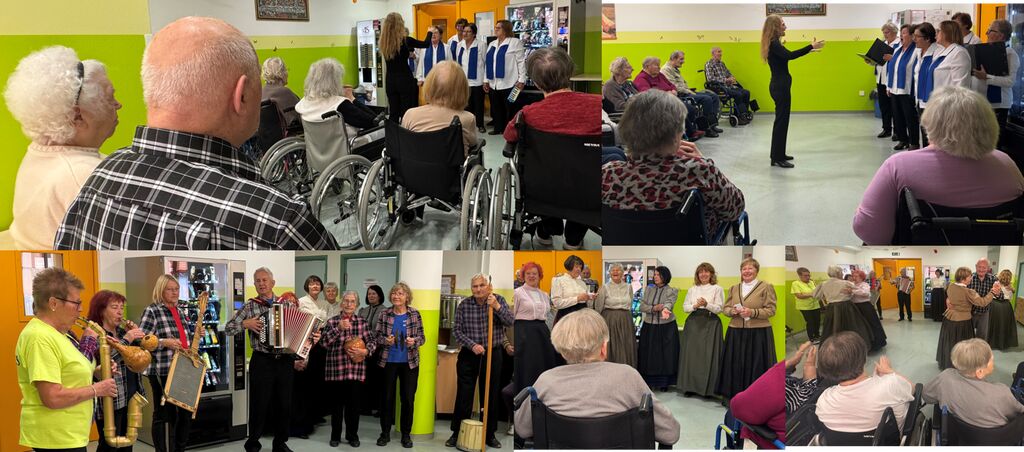 Že naslednji dan pa se je glasba razlegala še naprej – tokrat so nas razveselili člani ansambla Šempeter ter pevke skupine Grifon. Skupaj so pripravili čudovit nastop, poln energije, petja in smeha. Za piko na i so se vsi skupaj tudi zavrteli – tako nastopajoči kot naši stanovalci. Vsi smo se strinjali, da je bilo vzdušje prav tako, kot bi bili na pravi veselici.