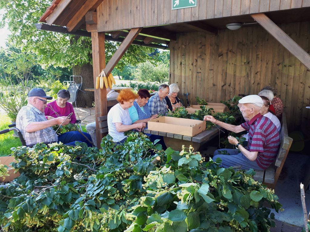 Tudi v NAŠEM DOMU se vsak dan kaj dogaja. skozi ves mesec imajo različne dejavnosti, npr. druženja ob jutranji kavi, telovadbo, igre s prostovoljčki, nabiranje zelišč, sadja, pomoč pri vožnji z vozički, tudi opravljanje različnih gospodinjskih opravil … Tudi posedanje pod lipo in opazovanje našega vrta z okolico ter poslušanje ptičkov je zelo dobrodošlo.