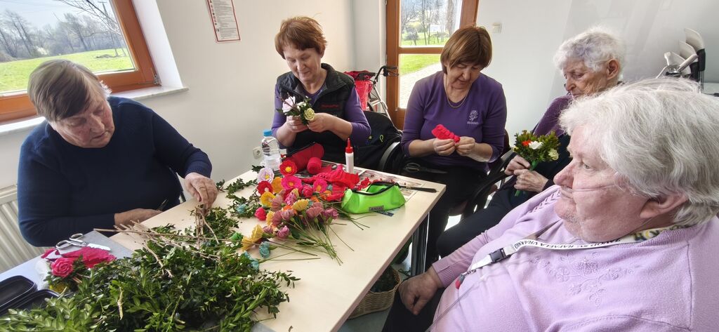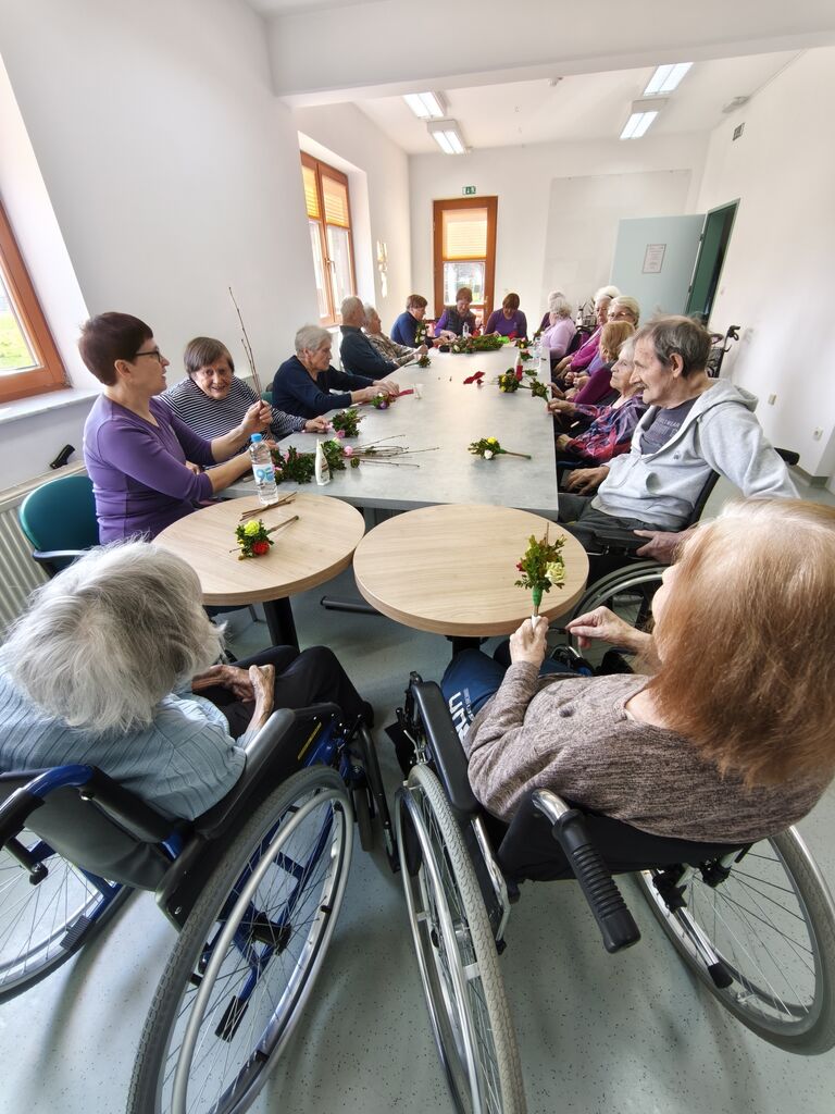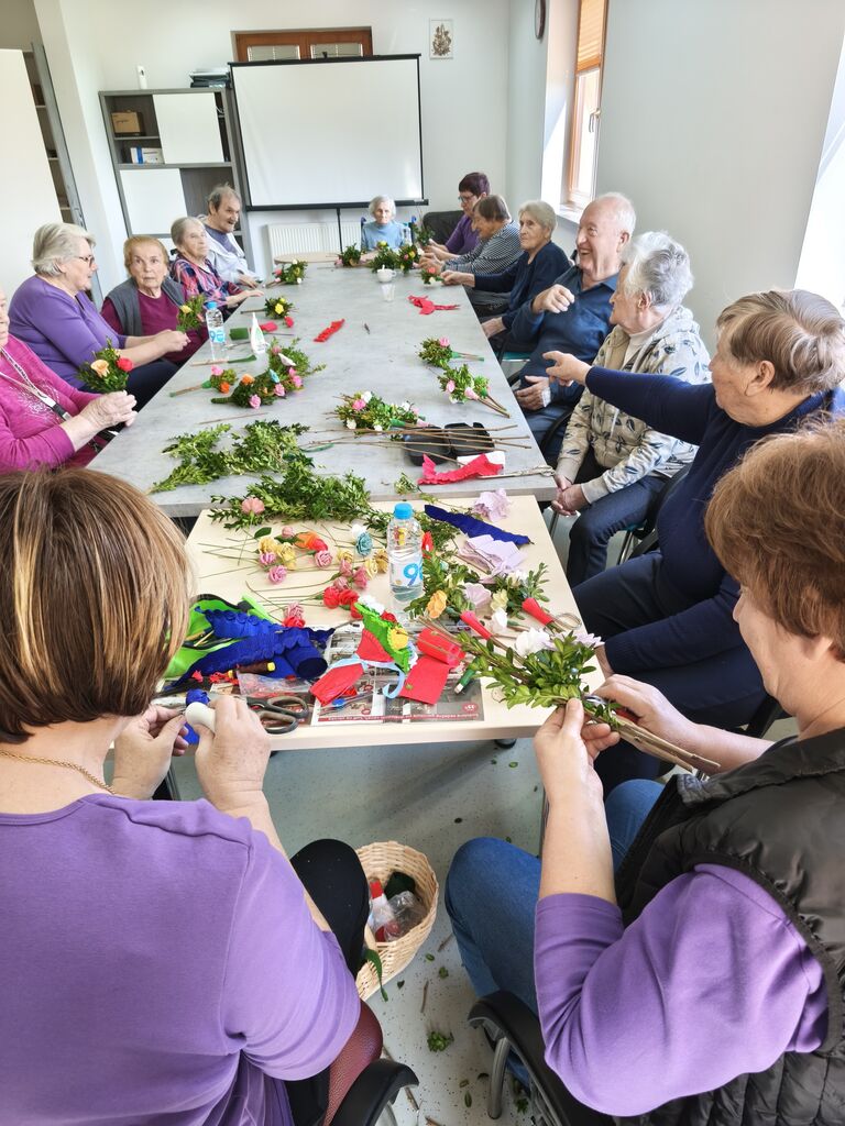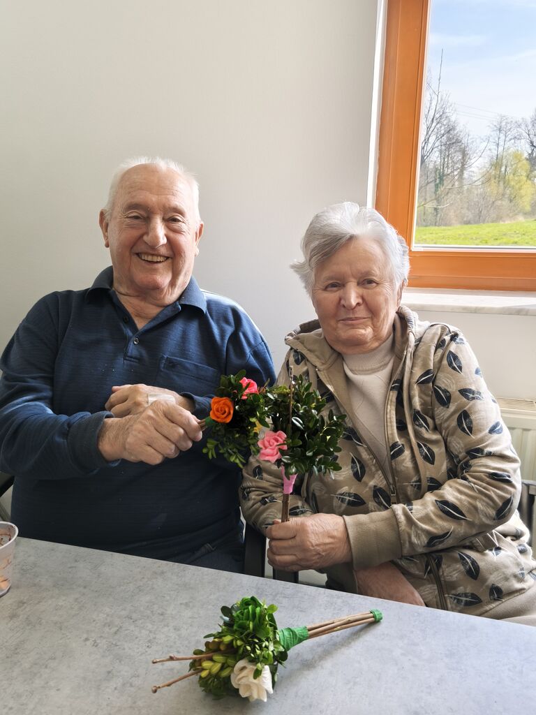 V nadaljevanju meseca smo se posvetili pripravam na cvetno nedeljo. Potekal je teden izdelave butaric, pri čemer so nam na pomoč priskočile članice skupine Vranske rož’ce, ki so pripravile čudovite butarice za naše stanovalce.