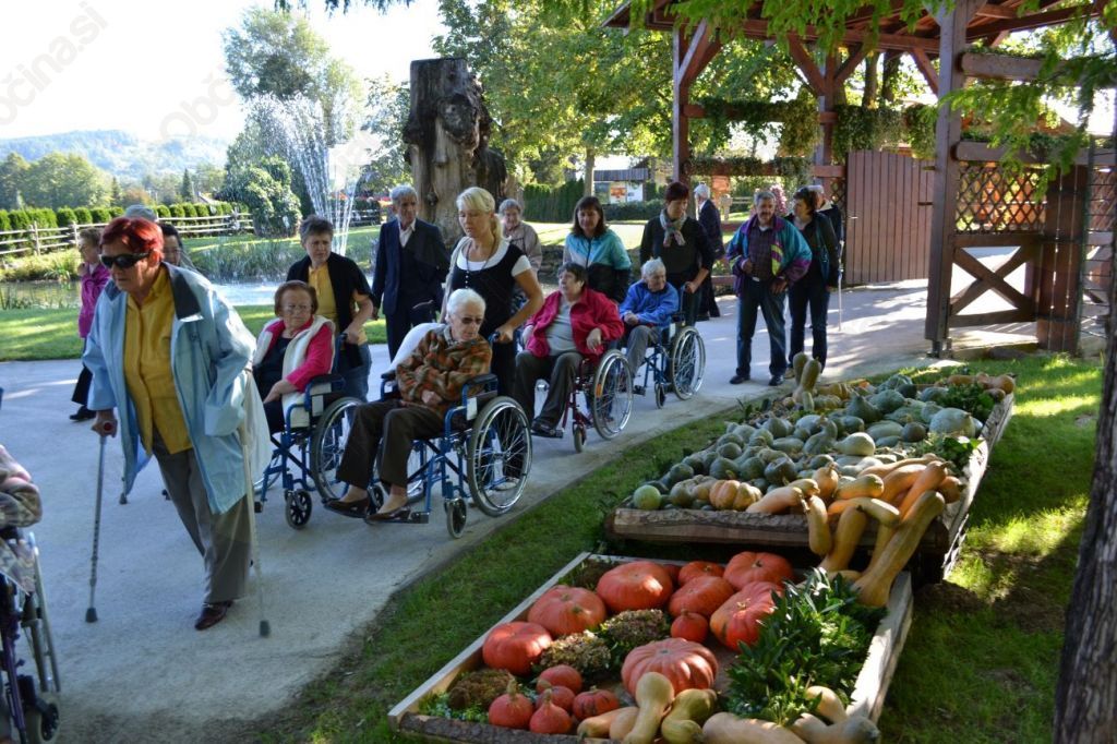 Če se ozremo na koledar, lahko opazimo, da smo zakorakali v jesen. V tem času počasi pobiramo zadnje pridelke z njiv in vrtov. Med njimi so tudi buče. Vsako leto pa imajo v Mozirskem gaju razstavo cvetja in buč. S stanovalci in spremljevalkami smo se po parku sprehodili in občudovali bisere narave. Nismo se mogli upreti krasnim pogledom na buče golico, buternut, violina, okrasna papiga, patišon, turban in preostale. Vse je bilo odlično postavljeno in vsaka rastlinica na svojem, posebnem mestu. Fotografirali smo se zraven pujsa, posebnega avtomobila in letala. Ob soju sonca in toplega vremena je sprehod minil zelo hitro. V gostišču pri parkirišču smo si privoščili še kavico in sok, nato pa se utrujeni in polni lepih vtisov vrnili nazaj v dom.