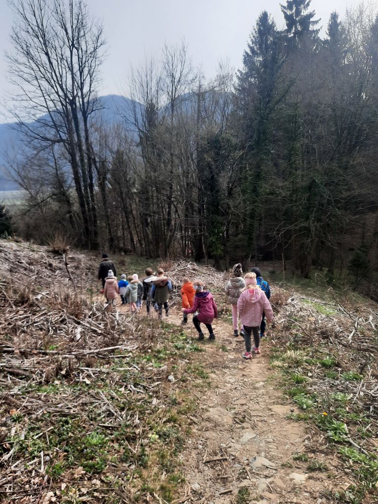 Nismo pa iskali samo po tleh, s pogledom navzgor smo ugotovili, da drevesa sploh nimajo listov. Spraševali smo se, ali so se posušila ali so še živa. Večina dreves je živih, vendar še niso pognala listov. Našli pa smo smreko, ki jo je pojedel lubadar. Pod lubjem je naredil pravo umetnino. Čas v gozdu je minil čisto prehitro, zato smo se odločili, da gremo kmalu spet.