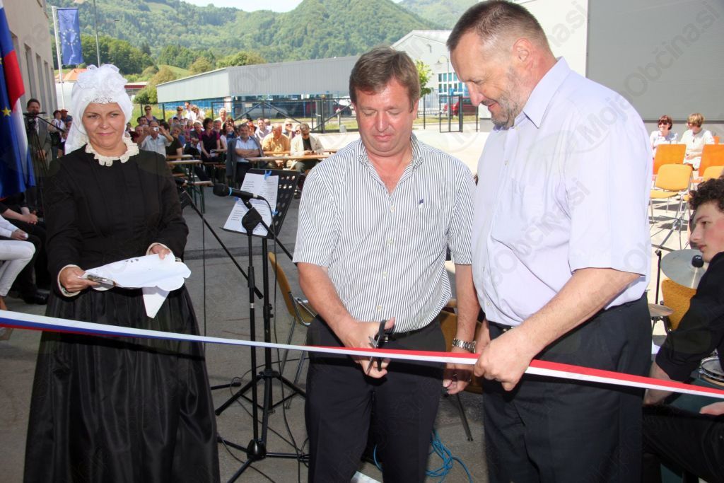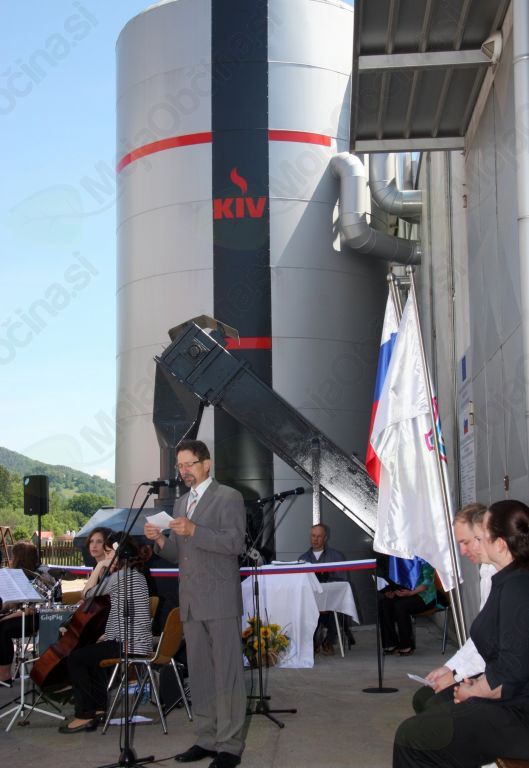 Svečana otvoritev prvega tovrstnega solarnega sistema v Sloveniji, ki dopoljnjuje daljinsko ogrevanje na biomaso, je bila v petek, 11. maja 2012.