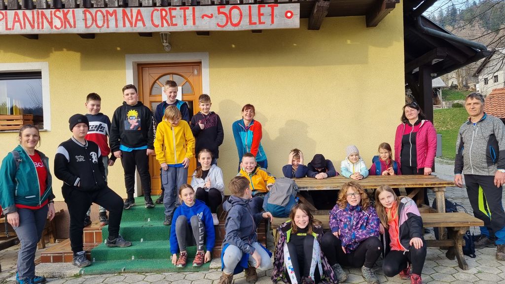 Planinski pohod na Čreto za učence od 5. do 9. razreda je bil na lep sončen petek. Odpravili smo se na Čreto, kjer smo po poti opazovali prebujanje pomladi. Nabirali smo rastline, ki so uporabne za čajno mešanico. Trobentice, pljučnik, vijolice in lapuh smo nabrali v papirnato vrečko, da se bodo doma potem lepo sušile. Na planinskem domu smo si privoščili malico iz nahrbtnika. Čez nekaj časa smo se razveselili učencev in mentorjev podružnične šole Tabor. Ti so na Čreto prišli z Žovneške strani. V koči smo še malce pokramljali in pojedli štrudelj. Veseli smo bili, da lahko prinesemo v dom nekaj drv in naši Ani tako malce pomagamo. Učenci in mentorji smo se nato skupaj odpravili domov po Vojkovi poti do Stopnika. Petkov dan smo zaključili že v temi in si obljubili, da tudi aprilski pohod poskusimo organizirati skupaj.