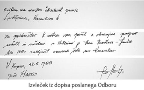 Domnevam, da je sodna listina o razglasitvi mojega očeta (komandant belokranjskega vojnega področja) namenoma izločena iz arhivskega gradiva in s tem odpravljena »napaka« glede navedbe o komandantu, kar razumem. Kljub temu pa menim, da bi se lahko brez slabe vesti priznalo napako in s tem »spregovorilo« o resnici. Saj je vendar naloga sodišča odkriti resnico in … Da se resnica prepozna, je treba slišati in poslušati obe plati zvona.