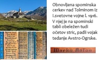 Med služenjem vojaškega roka v Bovcu (1967/68) sem v cerkvici na Javorci nad Tolminom na eni izmed plošč našel ime in priimek Anton Marko. Ob poznejšem preverjanju podatkov sem ugotovil, da je bil to stric mojega očeta (rojen leta 1861 v Lazah pri Velenju), ki je padel 22. 2. 1916 na Mrzlem Vrhu, kjer je tudi pokopan.