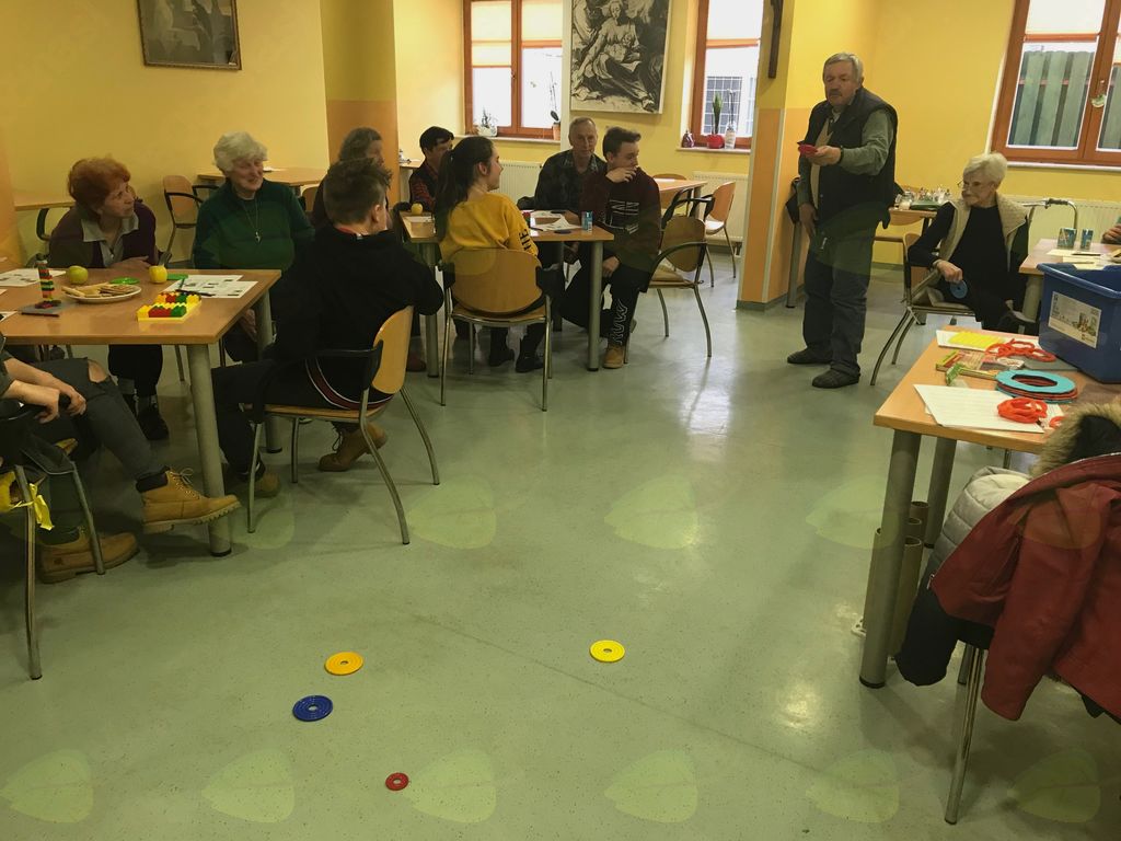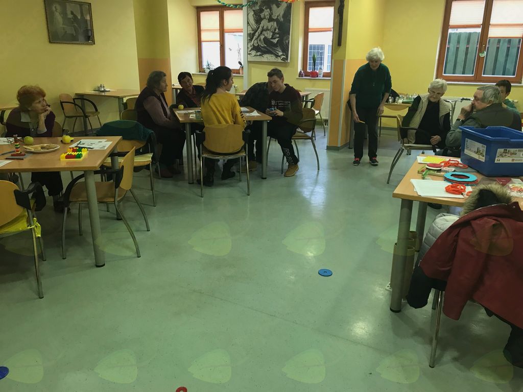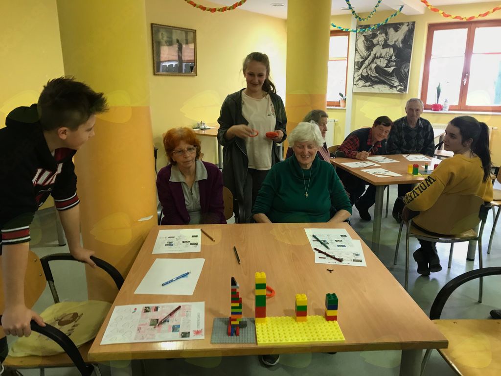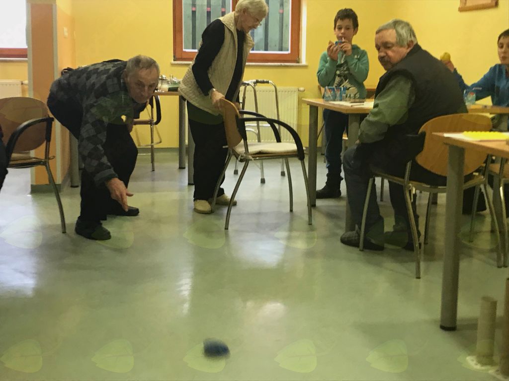 V torek, 20. 2. 2018, smo prostovoljci iz Osnovne šole Vransko-Tabor z učiteljicama Mirjano Kelavič ter Polono Vodičar ponovno obiskali prebivalce Našega doma na Vranskem. Na začetku smo se razdelili v tri skupine. V vsaki sta bila vsaj dva prostovoljca in vsaj dva stanovalca. Začeli smo z zimsko tombolo. Sličice na tomboli so bile povezane z letošnjimi zimskimi olimpijskimi igrami v Pjongčangu ter slovenskimi športniki, športi, medaljami ... Za vsako prejeto točko smo dobili eno lego kocko. Iz zbranih lego kock smo kasneje postavili več stolpov, na katere smo metali obročke. Vsak izmed stanovalcev ter prostovoljcev je imel pet poskusov, da zadene, vendar rezultati niso bili posebej dobri, kajti zadeti je uspelo le dvema stanovalcema. V zadnji igri smo balinčkali. Vsaka ekipa je imela tri balinčke različnih barv. Poskušali smo se približati glavnemu, rdečemu balinčku.