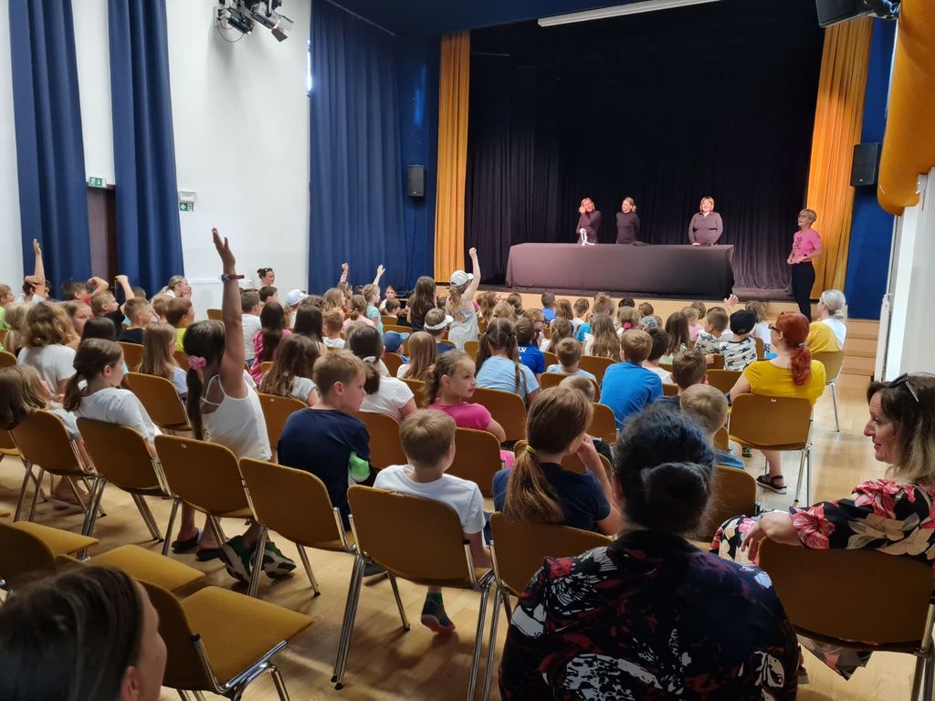 Zelo smo bili veseli, da smo si lahko v sredo, 21. 6. 2023, z učenci od prvega do petega razreda OŠ Vransko-Tabor ogledali lutkovno predstavo Štrikec.