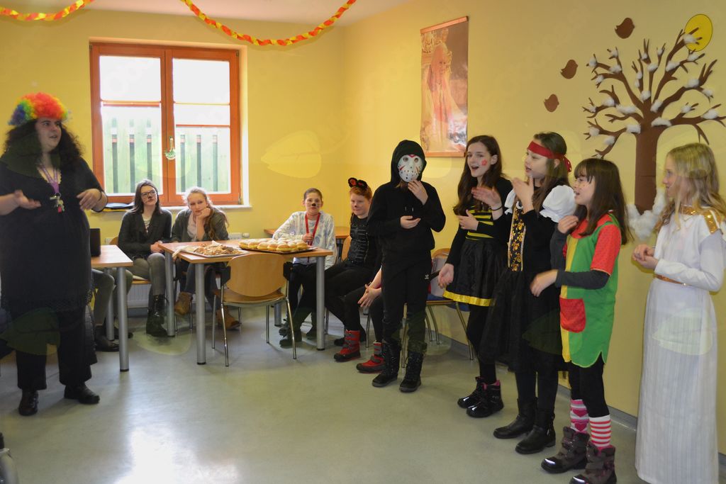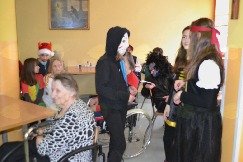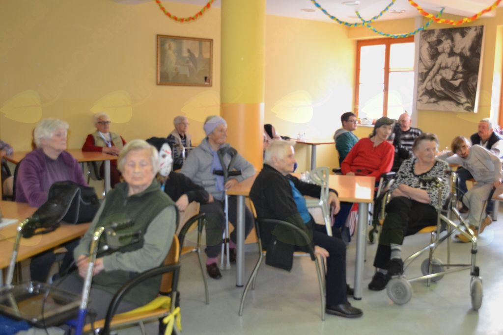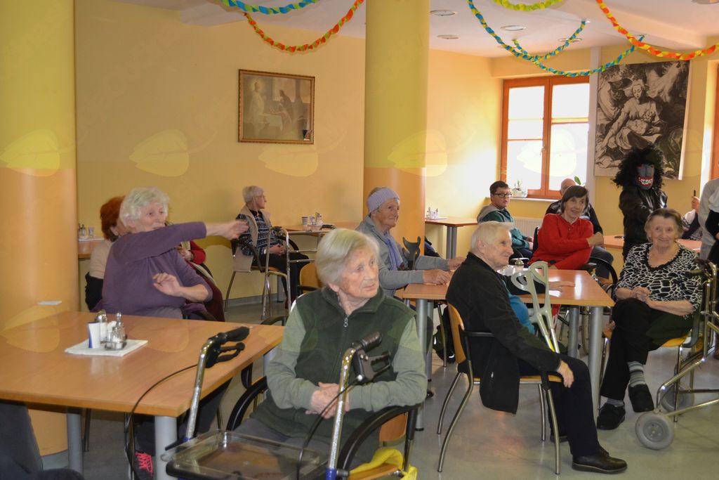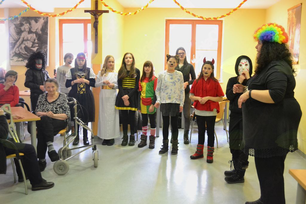 V torek, 13. 2. 2018, smo prostovoljci šli v dom za starejše. Seveda smo bili na pustni torek našemljeni v različne like in živali. Ob prihodu so nas stanovalci že čakali v jedilnici in imeli smo plesni kviz. Učenke šestega razreda so plesale na določeno glasbo, stanovalci pa so ugibali, za katero zvrst plesa gre. Po kvizu smo se igrali banse. Ob njih smo uživali in se seveda tudi nasmejali. Bansi so ritmično besedilo, pri katerem uporabljamo kretnje in dele telesa. Potem smo se še malo pogovarjali, sladkali s krofi in flancati, ki so jih za nas spekli stanovalci. Na obrazih smo videli nasmehe, ki smo jih pričarali s svojim obiskom. Zadovoljni smo se razšli.