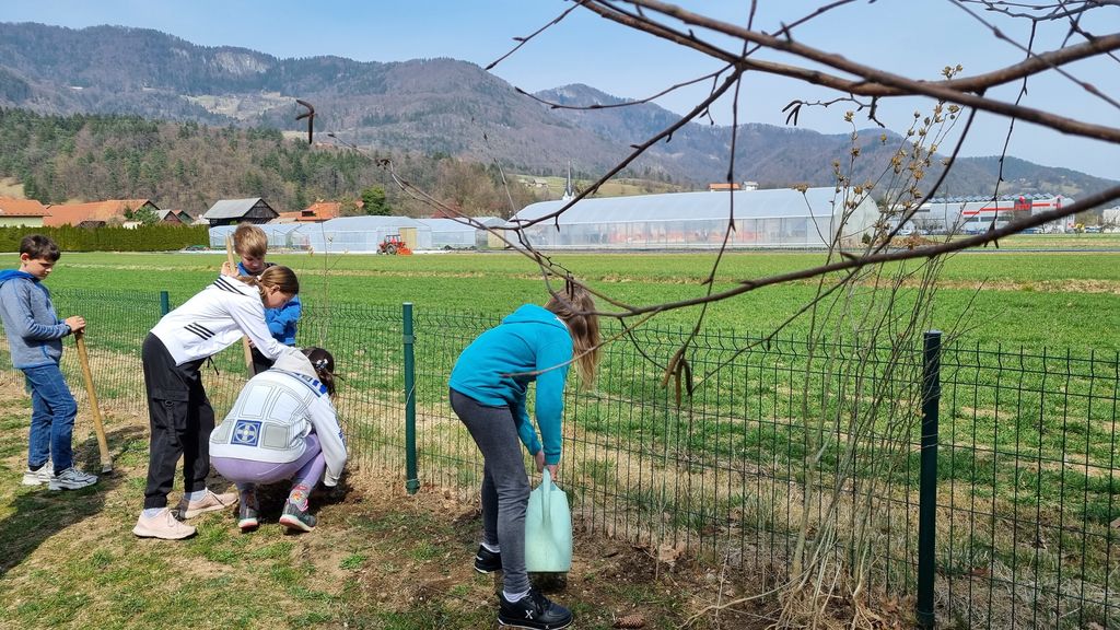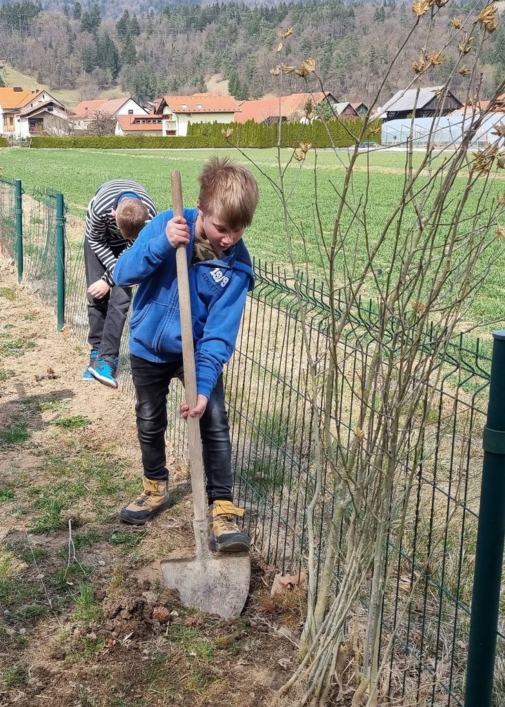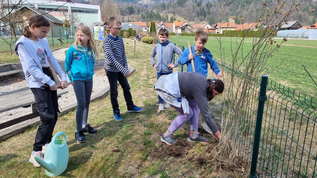 Pomlad je čas prebujanja narave. Petošolci, učenci razširjenega programa kuhanje in vrtnarjenje OŠ Vransko-Tabor, so izkoristili toplo vreme in zasadili ob ograji šolskega čebelnjaka grmovnice hibiskusa. Hibiskus ali sibirski oslez je listnat grm, ki zraste nekje do dveh metrov. Tako bo zasaditev tudi protihrupna zaščita naše učilnice na prostem. Grm cveti od junija do jeseni in ima neskončno mnogo enodnevnih, pisanih cvetov. S sajenjem medovitih rastlin čebelam, metuljem in čmrljem zagotavljamo več hrane, da lažje preživijo zimo in naslednjo pomlad lahko spet opravljajo svojo najpomembnejšo nalogo – opraševanje.