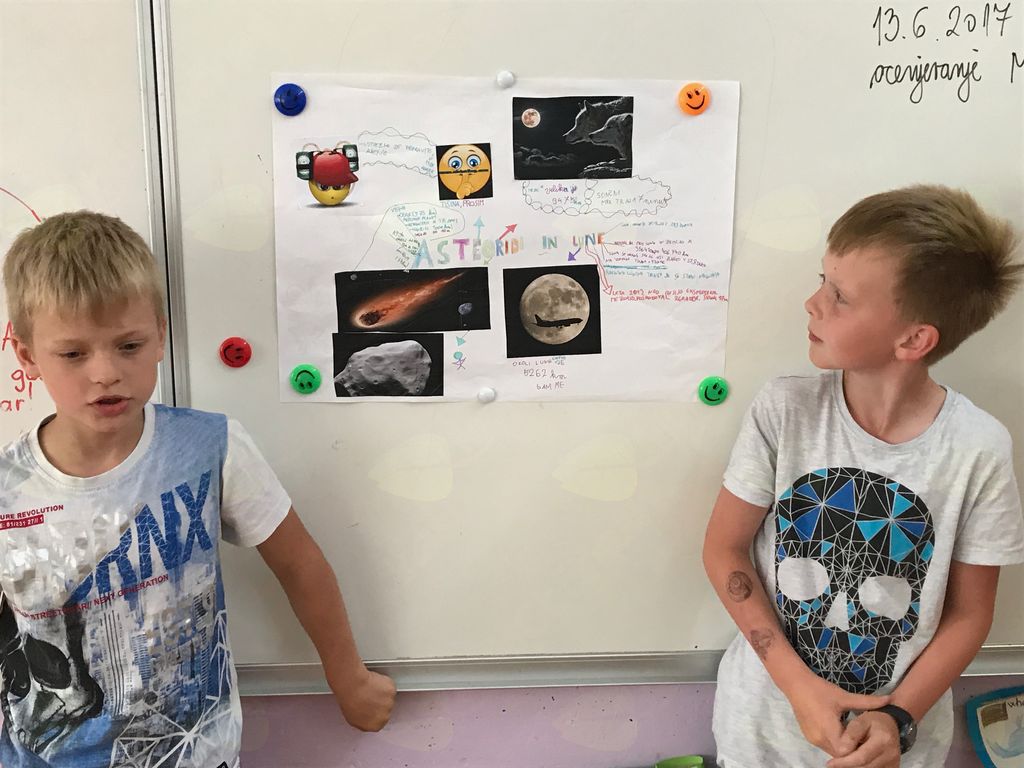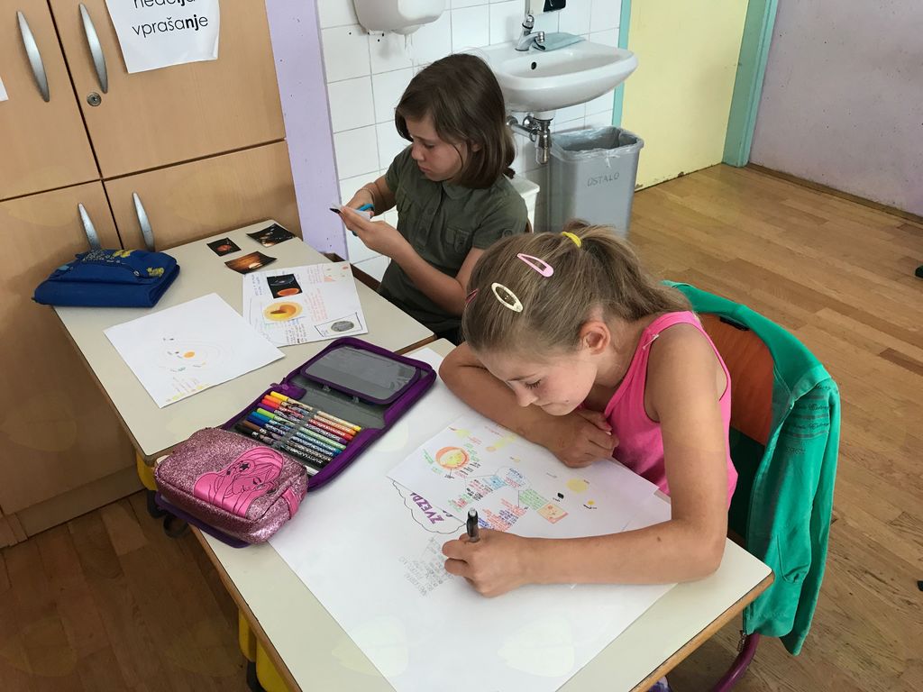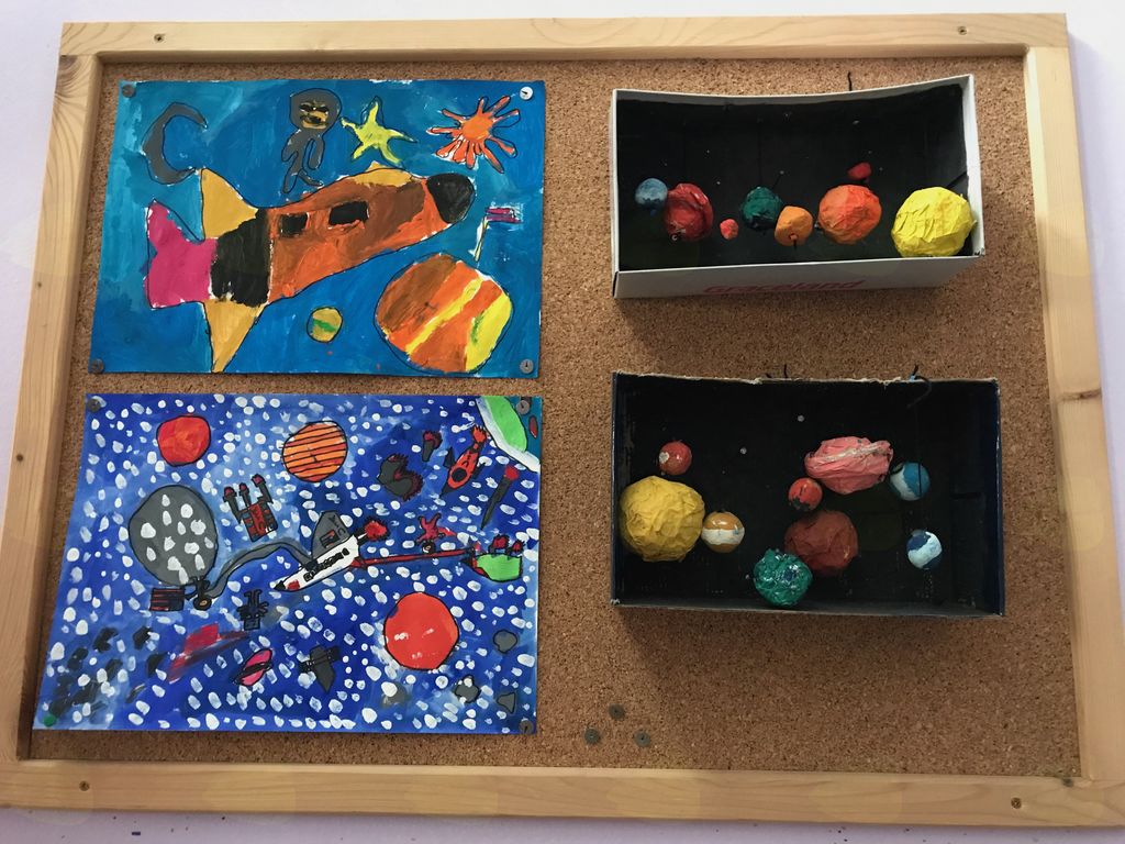V okviru projekta Erasmus+ Head in the clouds, v katerem sodelujemo že drugo leto, se v tem obdobju ukvarjamo z vesoljem in spoznavamo različna nebesna telesa, pojave, se sprašujemo, zakaj imamo dan in noč, letne čase, spoznavamo tudi druge planete v našem osončju ipd.