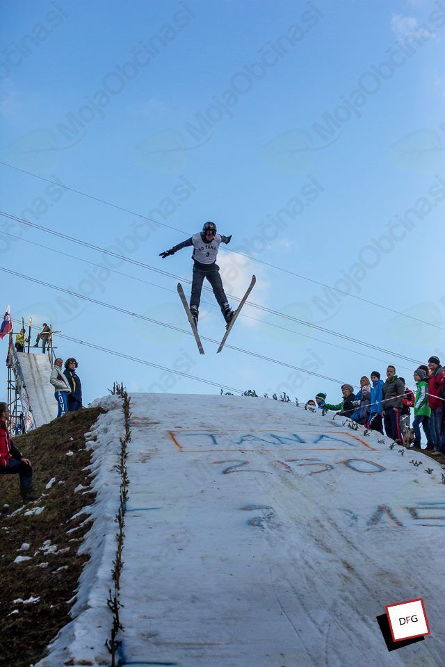 Po dveletnem premoru smo se člani ŠD TANA zaradi ugodnih snežnih razmer v februarju odločili, da organiziramo tradicionalno tekmovanje v smučarskih skokih z alpskimi smučmi na 25-metrski skakalnici. Z deli na skakalnici smo pričeli 12 dni pred pričetkom tekmovanja. Prvotne snežne razmere in vremenska napoved so bile spodbudne, zato smo tekmovanje organizirali v nedeljo, 15. 2. 2015, ob 14. uri. Vremenske razmere pa so se v zadnjem tednu bistveno poslabšale, ker se je zelo otoplilo. Da smo lahko ustrezno pripravili skakalnico in prireditveni prostor, je bilo potrebno v zadnjih dneh na prizorišče prepeljati okrog