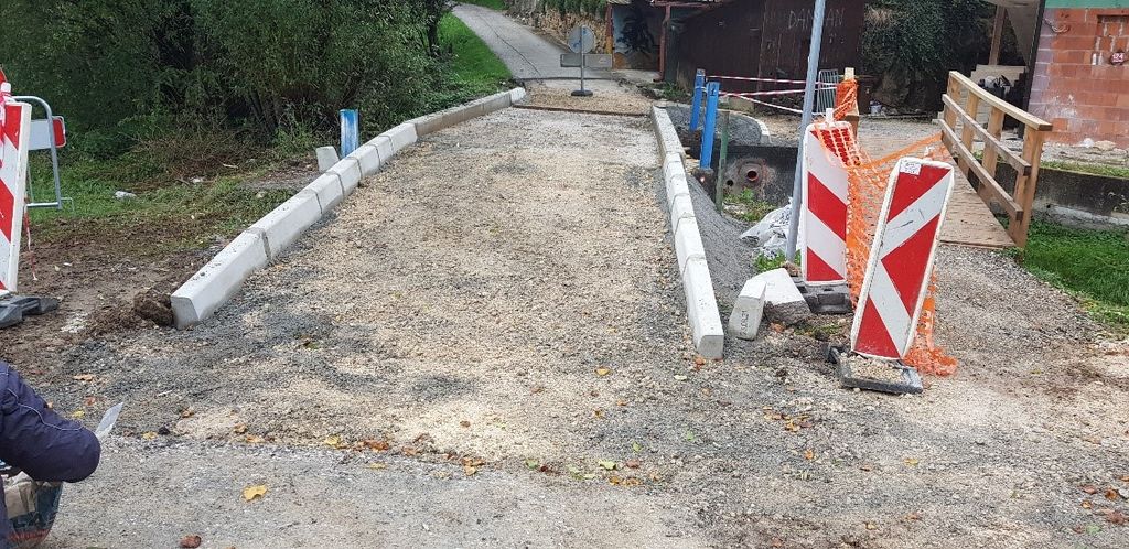 Zaradi trenutne situacije v gradbeništvu, ko primanjkuje izvajalcev, predvsem asfalterjev, smo bili primorani odpreti cesto za promet, pa četudi v makadamski izvedbi. Trudimo se, da bo cestni odsek čim prej asfaltiran in tak predan svojemu namenu.
