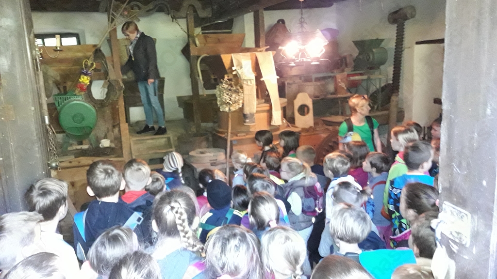 Po končanem teku smo imeli malico, nato pa smo se podali na pohode po Občini Vransko. Učenci prvega triletja smo odšli do Homškovega mlina, kjer so nas pričakali in prijazno odprli vrata lastniki g. Drago in ga. Alojzija Kos ter ga. Slava Škrabar, ki nam je predstavila kratko zgodovino tega znanega mlina. Po ogledu so se učenci še okrepčali z zelo dobrim čajem ter piškoti, ob tem pa uživali v vonju kruha, ki se je pekel v krušni peči. Za vse se jim najlepše zahvaljujemo.