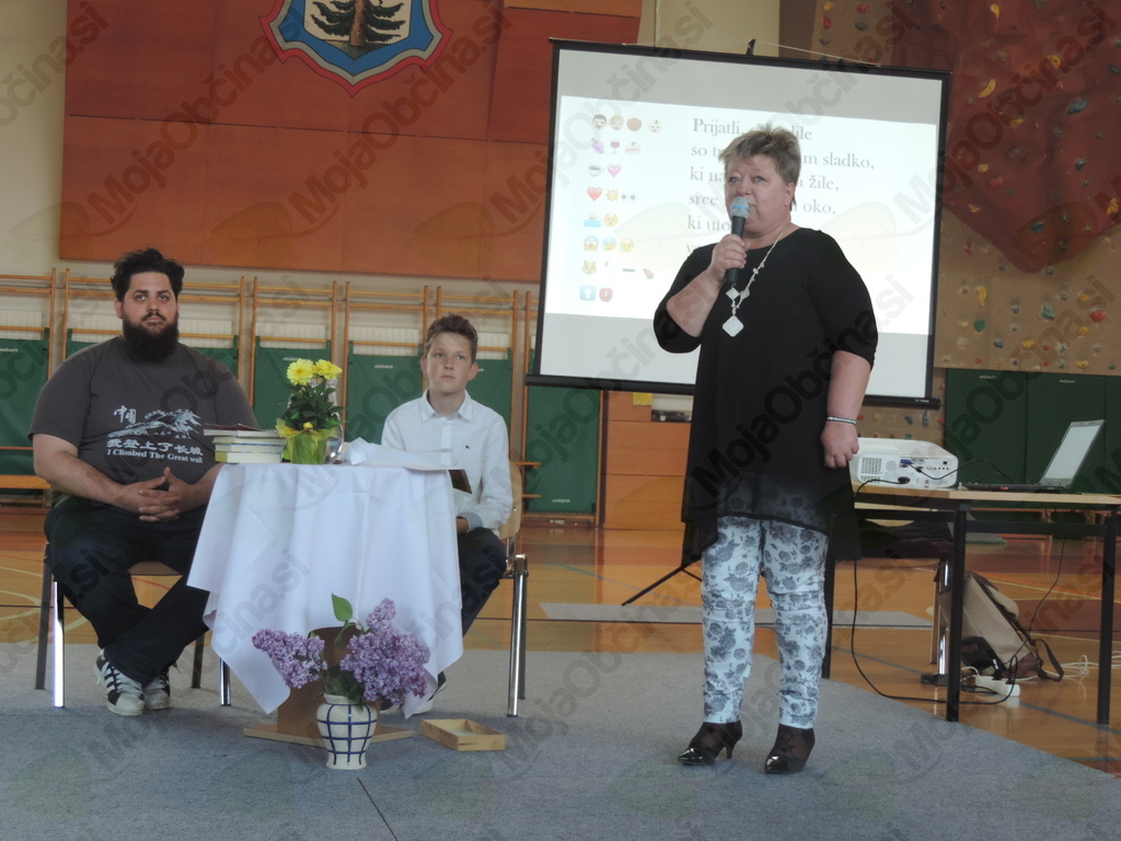 Prireditev je povezoval osmošolec Amadej Kreča, ki je svoje delo opravil zelo profesionalno, saj je ob mentorstvu knjižničarke Marije Završnik vezno besedilo oblikoval sam. Vanj je vložil humorne vložke, v katerih je predstavil avtorja in njegovo delo, prav tako pa je dal priznanje tudi prizadevnim učiteljem slovenščine, ki spodbujajo učence k vztrajanju pri branju za bralno značko.