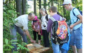 13. 6. 2013 smo šli v gozd. Ob 8.25 smo razdelili malico ter odšli na Gorico. Z gozdarjema Janezom in Jožetom smo odšli po gozdu. Spoznali smo divjo češnjo. Gozdarja sta nam predstavila bolezni. Neka ptica odvrže jajca na liste. Naš gozdar je bil Jože. Po ogledu smo se igrali igrice v paru: vodili smo par po poti do drevesa in nazaj, delali smo koktajle, naredili smo koncert in v manjših skupinah naslikali sliko iz gozdnih plodov o poletju. Všeč mi je bilo, ko smo se igrali igrice.