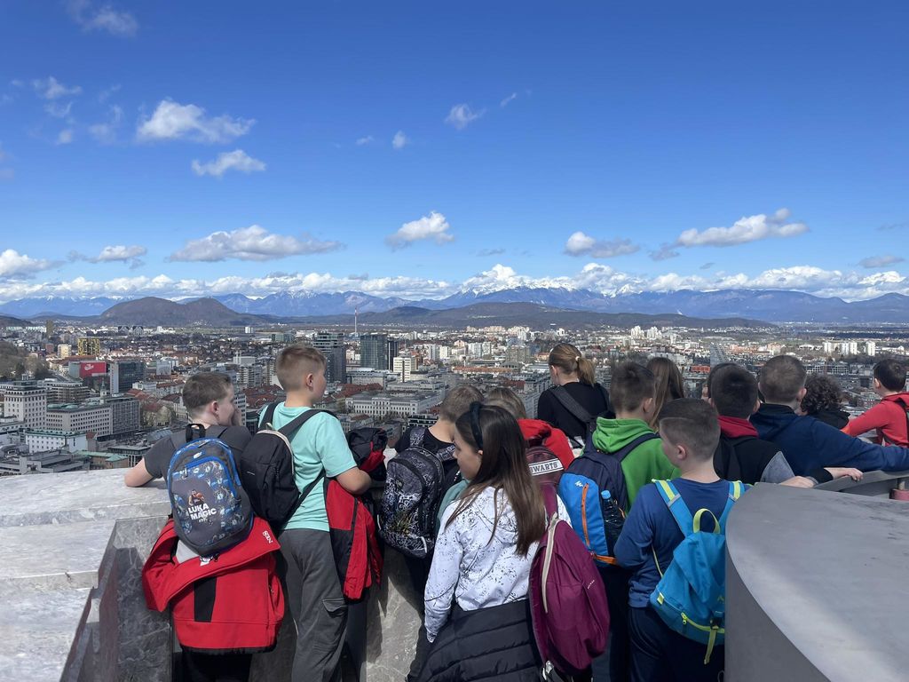 Z vzpenjačo smo se povzpeli na Ljubljanski grad, kjer smo na razglednem stolpu uživali v razgledu na mesto. Razgled z vrha gradu je bil res čudovit – Ljubljana je bila videti kot na dlani. Sploh zato, ker nas je cel dan spremljalo prijetno spomladansko sonce. Obiskali smo še manjši muzej, kjer smo se pobliže spoznali s slovensko zgodovino. Na gradu pa smo si ogledali tudi 4D-projekcijo filma o zgodovini samega gradu.