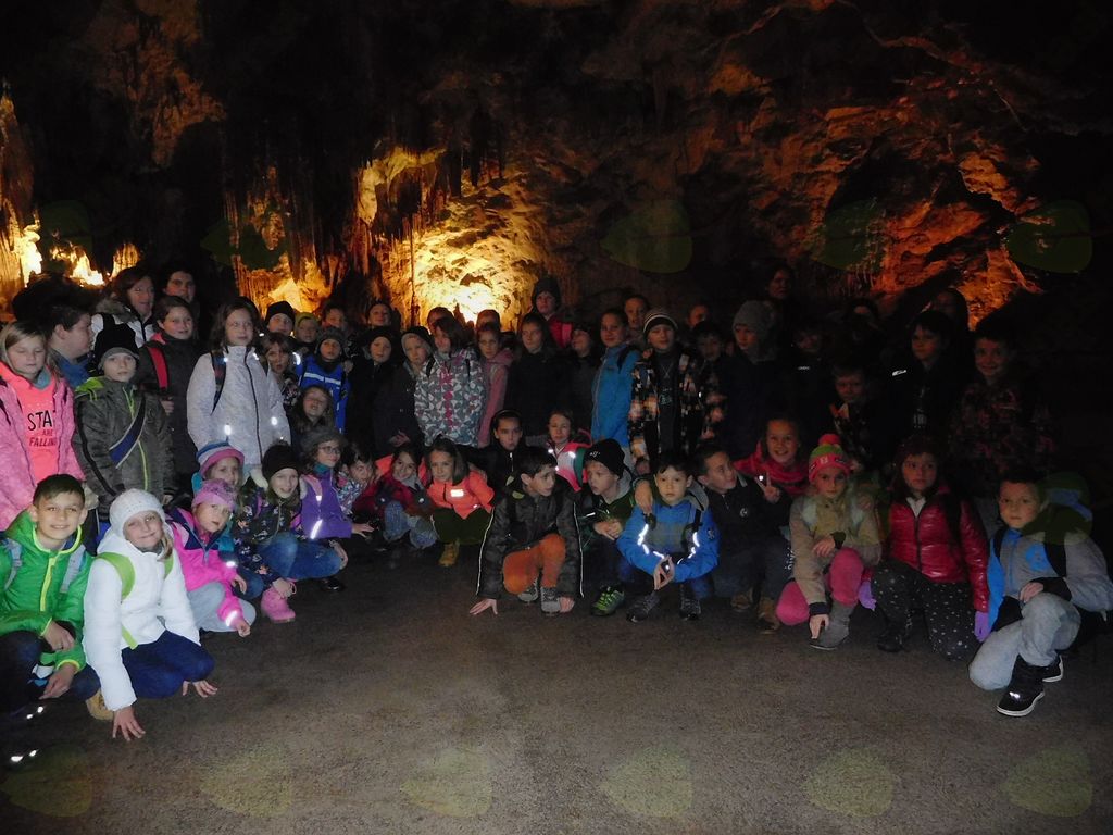 Avtobus nas je pobral pred šolo. Odpeljali smo se do Predjame. Tam smo si ogledali Predjamski grad. Grad je sestavljen iz zidanega in jamskega dela. Potem smo se odpeljali na kosilo v restavracijo Briljant. Tam smo pojedli naročeno kosilo. Potem smo si ogledali razstavo EXPO, kjer sem si zapomnila, da so v jami našli marsikaj. Tudi to, kako je pračlovek uporabil kost jamskega medveda za piščal. Po ogledu smo šli končno na vlakec, ki smo ga vsi čakali. Vlakec nas je odpeljal v središče jame, od tam pa smo hodili in si ogledovali kapnike. Po Postojnski jami nas je vodil vodič in nam razložil veliko stvari. Ogledali smo si tudi človeške ribice. Mimo bobneče reke Pivke smo odšli na vlakec, ki nas je popeljal nazaj na površje. Ogled je trajal skoraj dve uri. Ko smo prišli iz jame, nas je že čakal avtobus in šofer nas je odpeljal domov.