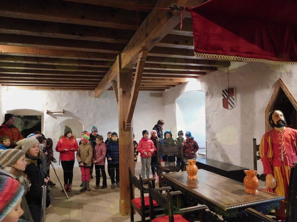 Najprej smo obiskali Predjamski grad, tam smo si ogledali grad. Videli smo orožarno, spalnico, domačo kapelo, sodno sobo, mučilnico, temnico, kraljevo sobo, sobo služkinj in zaklonišče. Prvi lastnik gradu je bila družina Kobencelj, slišali pa smo tudi zgodbo o najbolj znanem prebivalcu gradu, Erazmu Predjamskem, in videli topovske krogle, s katerimi so napadali grad.
