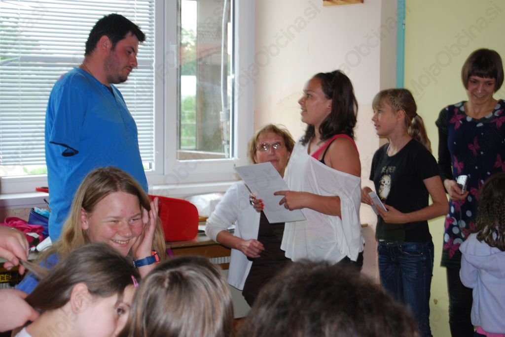 Imeli smo tudi častnega gosta, in sicer gospoda Dejana Grilja, ki je v delovni nesreči izgubil obe roki. Povabili smo ga z namenom, da mu podarimo denar, ki smo ga v okviru krožka zbrali s prodajo brošk Za Dejanov objem. Podarili smo mu neverjetnih 1600 evrov, kar pa še ni povsem dokončen znesek, saj zanj še zmeraj prejemamo prostovoljne prispevke. Dejan in njegova hčerkica sta bila navdušena nad obiskom Gaje in nam povedala, da tudi oni v kratkem pričakujejo psa.
