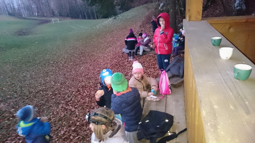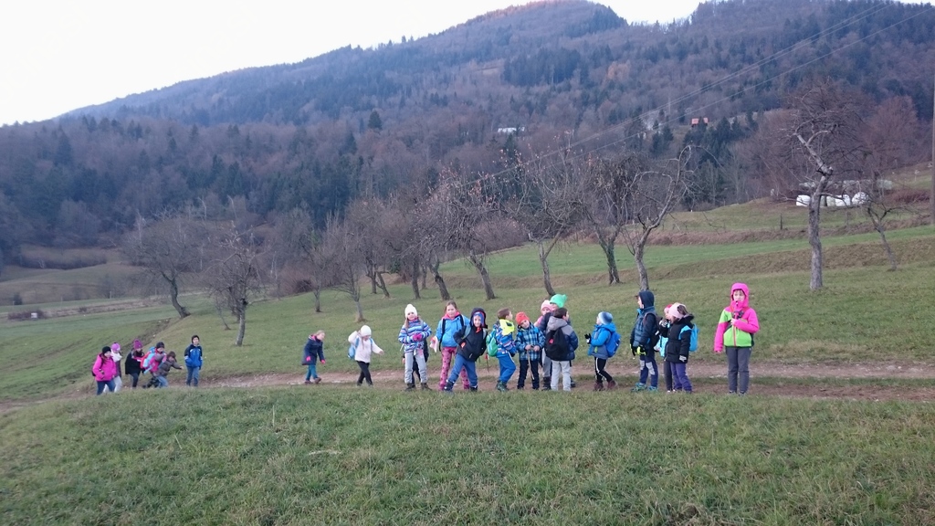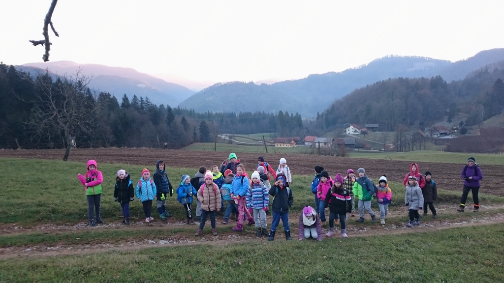 »Najprej smo šli od šole, potem smo šli proti Tešovi in na Briše. Nato smo malicali, vmes pa še fotografirali. Od Miklavža smo dobili pismo in darilo. Všeč mi je bilo, ker smo svetili s svetilkami.« Anže Šramel, 4. a, in Marcel Semprimožnik, 2. a