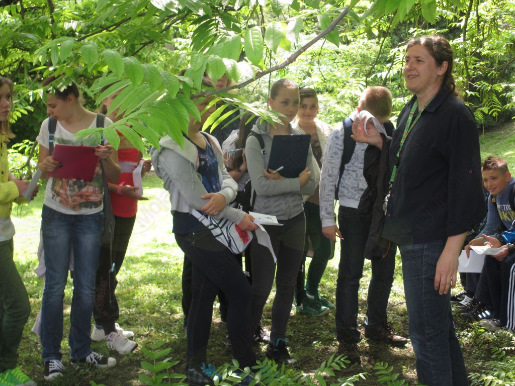 Po predavanju smo imeli malico, nato pa smo se razdelili v dve skupini. Naša skupina si je šla najprej ogledat grmovne in drevesne vrste, ki jih imajo posajene v parku, ki je velik kar tri hektarje. Odkrili smo, kako se poimenujejo živa bitja, ter med drugim videli tudi dva živa fosila, ginka in volemijo. Na koncu smo dobili učni list in ga s pomočjo vodičke rešili. Nato smo se zamenjali z drugo skupino in si šli ogledat posebna drevesa, ki so drugačna od drugih. To so platana, volemija, ambrovec (iz njega izdelujejo žvečilne gumije).