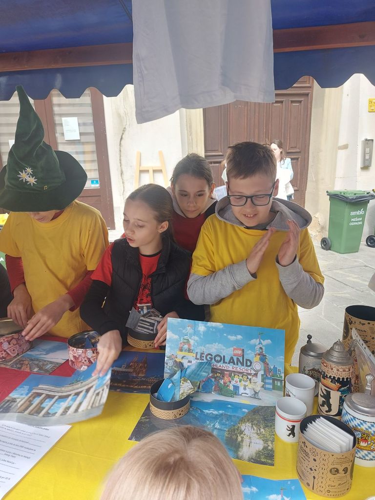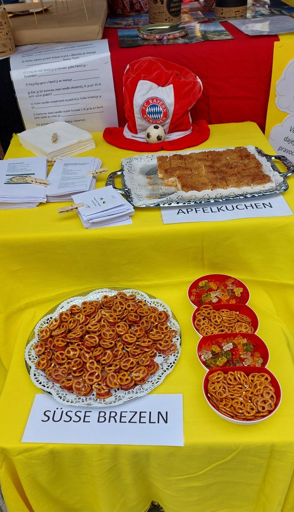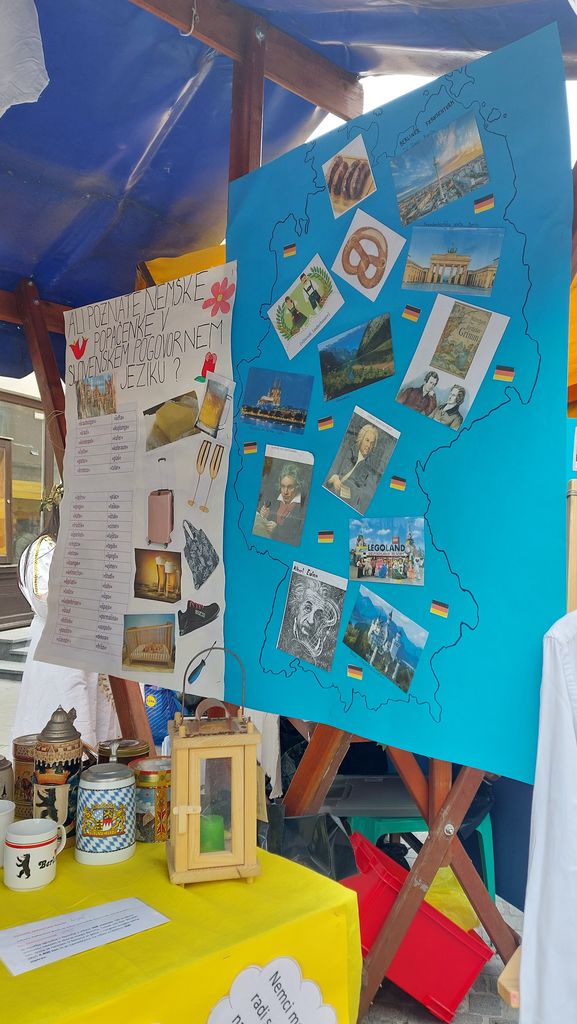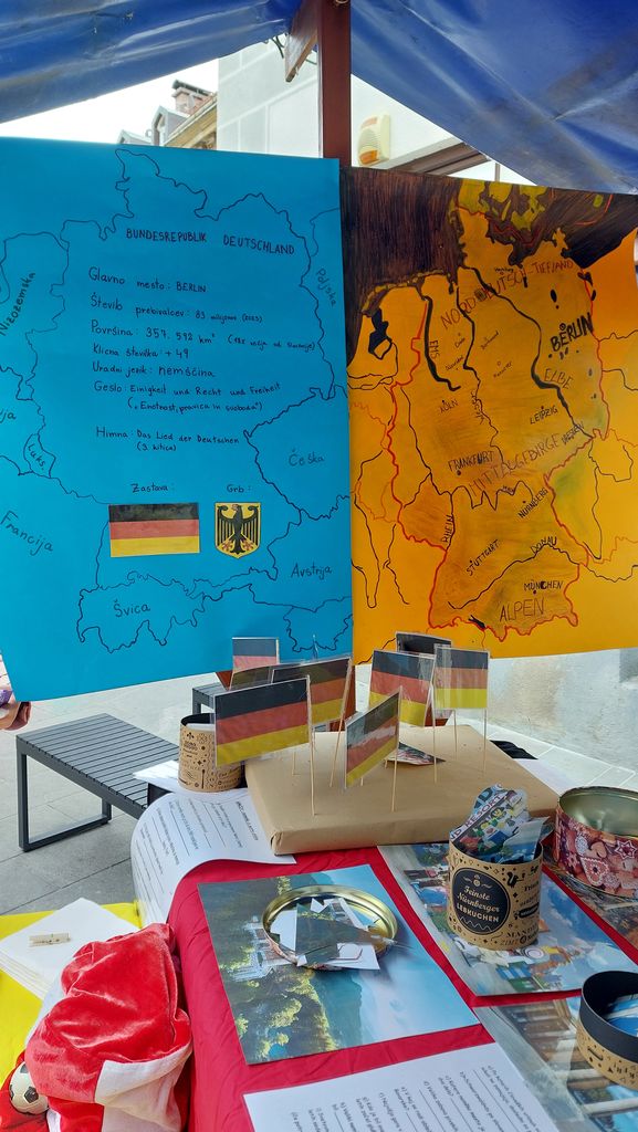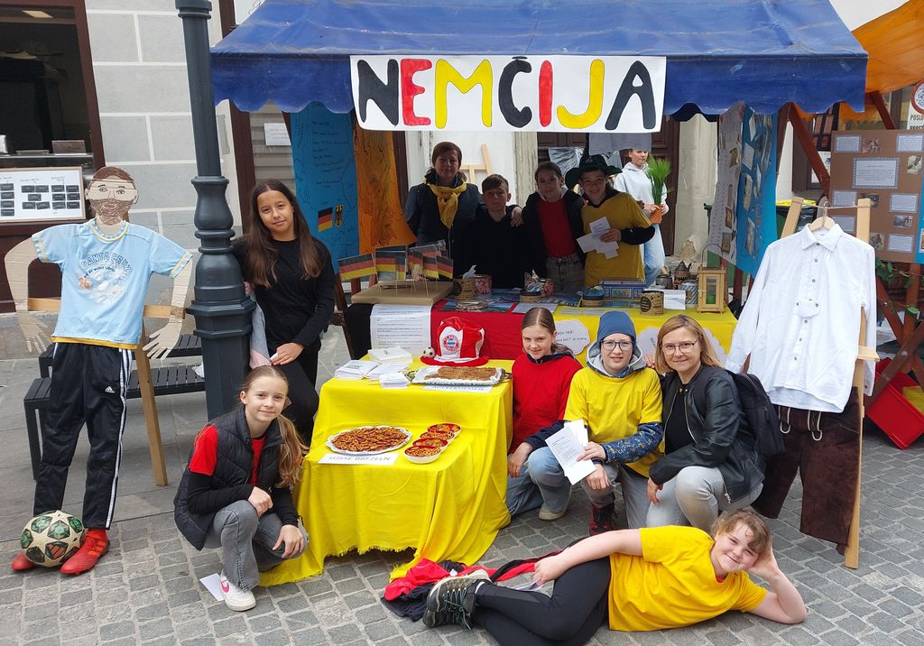 Tudi naša šola je letos prvič sodelovala na prireditvi in z ekipo 6. c-razreda z mentoricama Martino Zupan Kuserbanj in Tadejo Zupanc smo predstavili državo Nemčijo. Pripravili smo izvirno stojnico, kjer smo obiskovalcem prikazali: