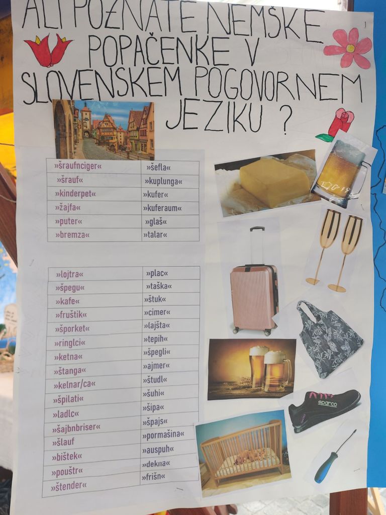 - nekaj osnovnih nemških besed in fraz s slovarčkom,