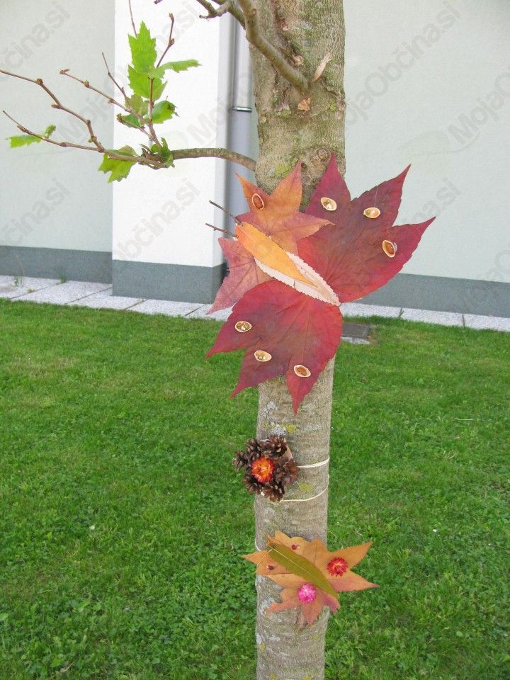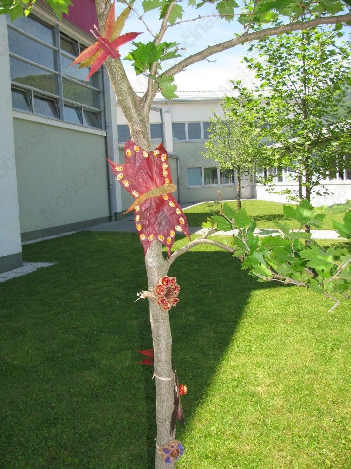Sara Kaluža, Anže Novak, Vid Radulj, Ana in Tjaša Pečovnik, Zala Križnik, Katja Pestotnik, Neža Podbregar ter David Reberšek so ustvarjali iz naravnih materialov in nato svoje izdelke razstavili kar v naravi, na šolskih drevesih pri parkirišču. Poslali smo fotografije izdelkov, ocenjevalci pa so jih izbrali izmed številnih prispevkov iz osnovnih šol po vsej Sloveniji ter nam dodelili 1. mesto.